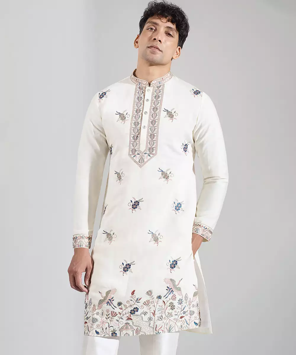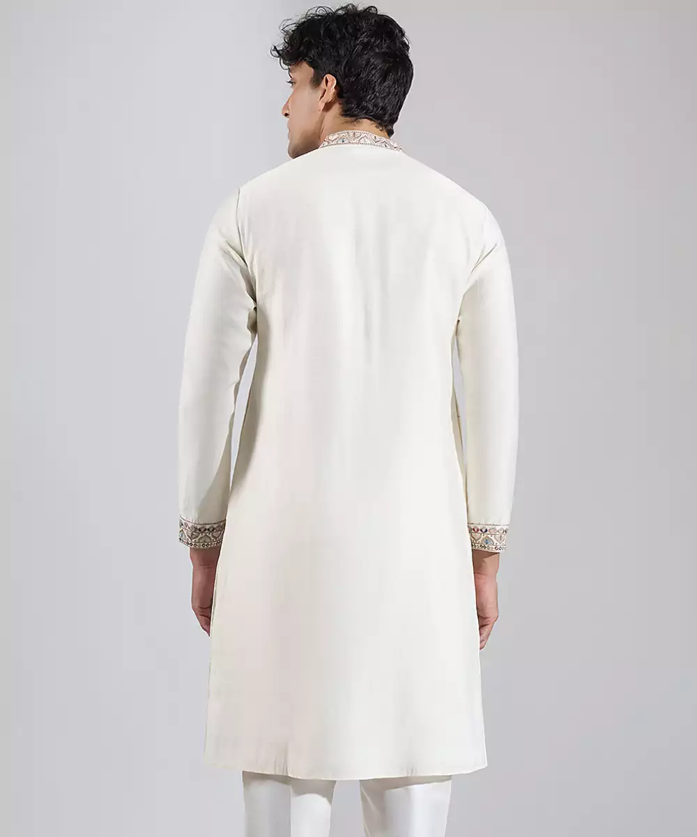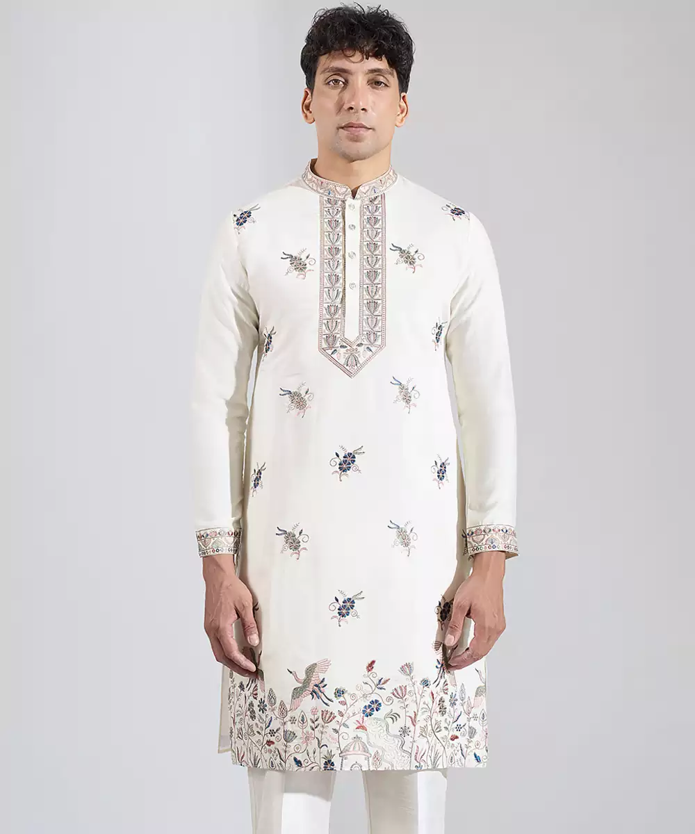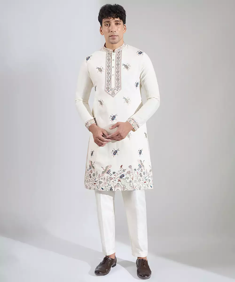 This White Embroidered Cotton Kurta Pajama Blends Timeless Elegance With Everyday Comfort. Crafted From Soft, Breathable Cotton, It Features Delicate Embroidery That Adds A Refined Touch. The Tailored Kurta Paired With A Classic Pajama Offers A Clean, Polished Silhouette, Making It Perfect For Festive Occasions, Cultural Gatherings, Or Traditional Celebrations.