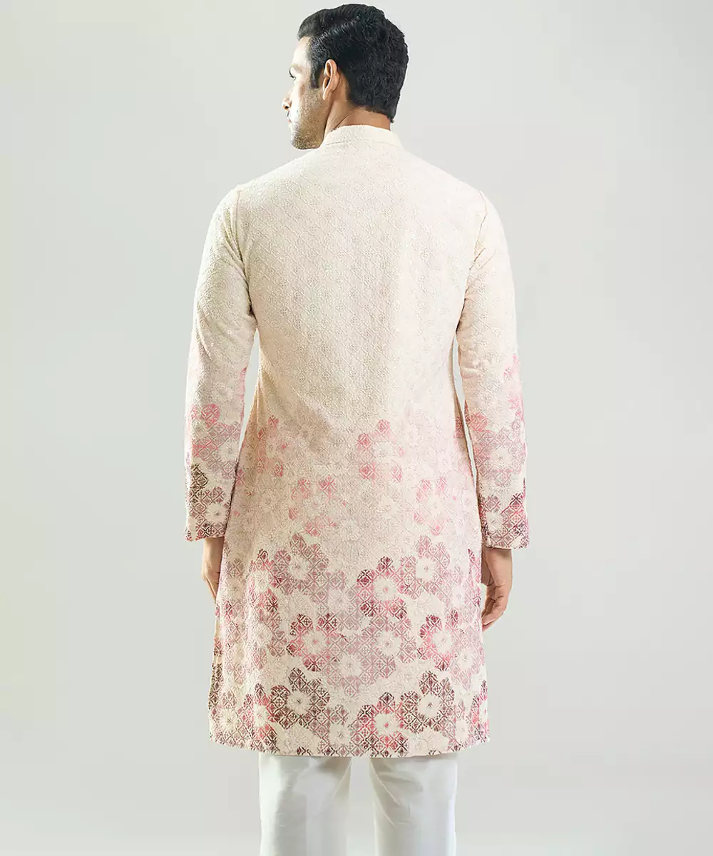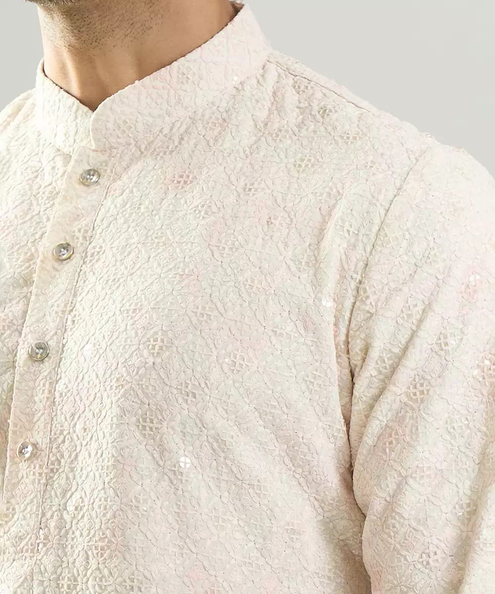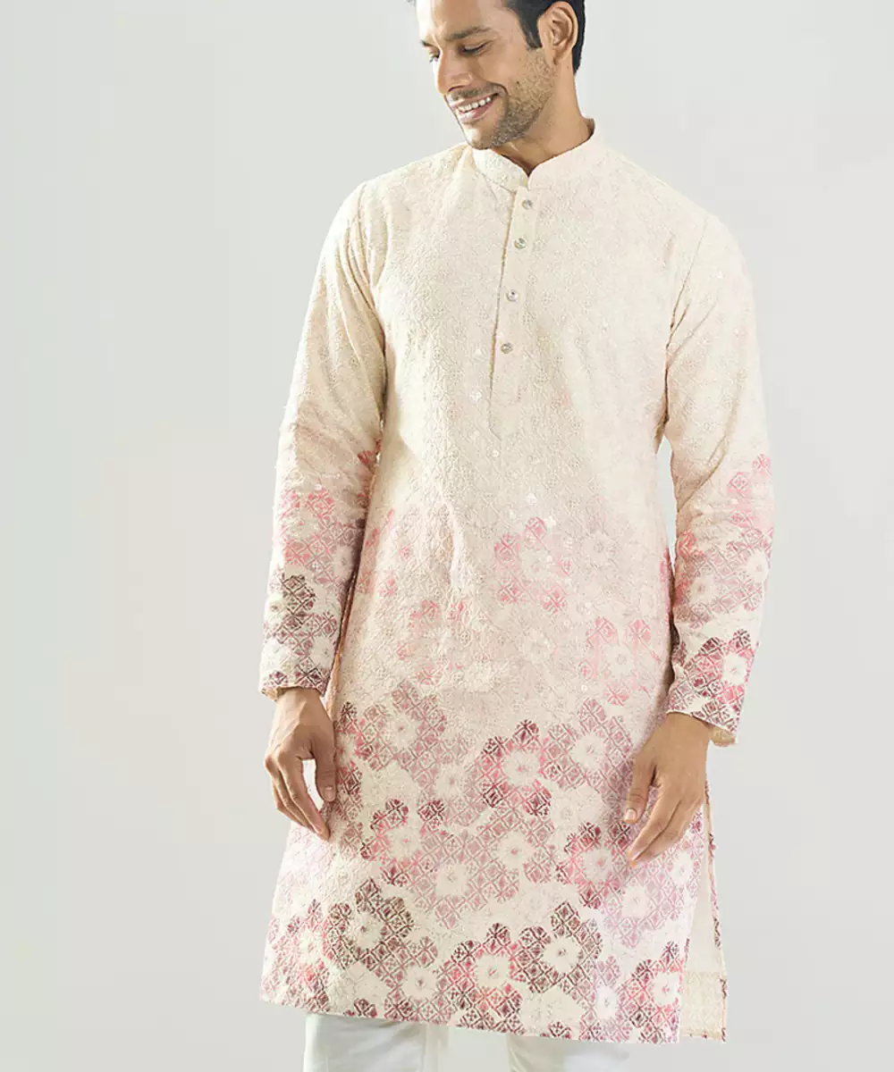 This White Embroidered Cotton Silk Kurta Pajama Exudes Timeless Elegance And Refined Charm. Crafted From A Soft Cotton Silk Blend, It Features Delicate Embroidery That Enhances Its Sophisticated Appeal. The Tailored Kurta Paired With A Classic Pajama Offers Comfort And A Polished Silhouette, Perfect For Festive Occasions And Traditional Celebrations.