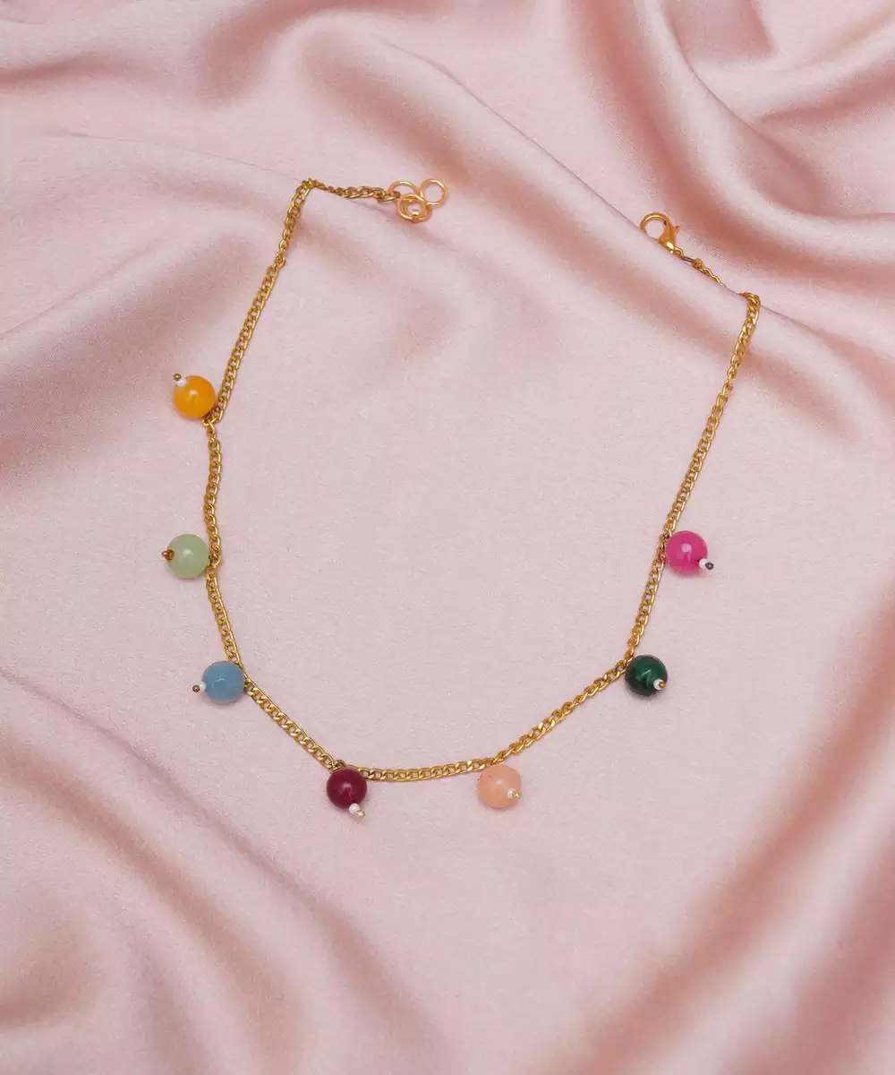 Girls Gold Plated Artificial Beads Beaded Necklace