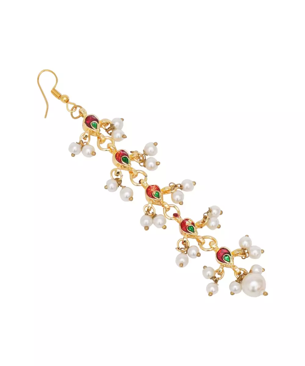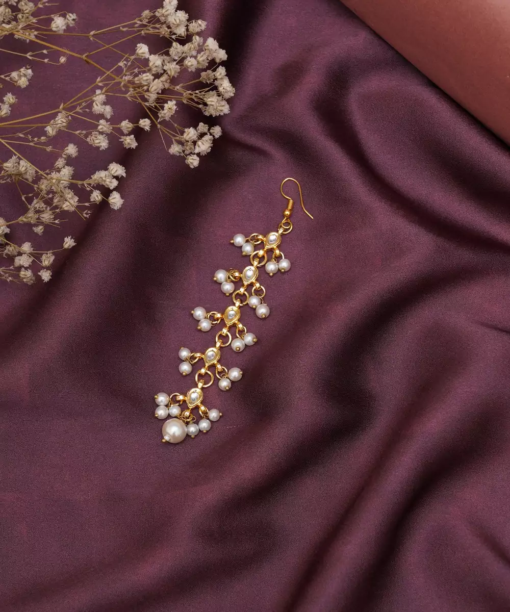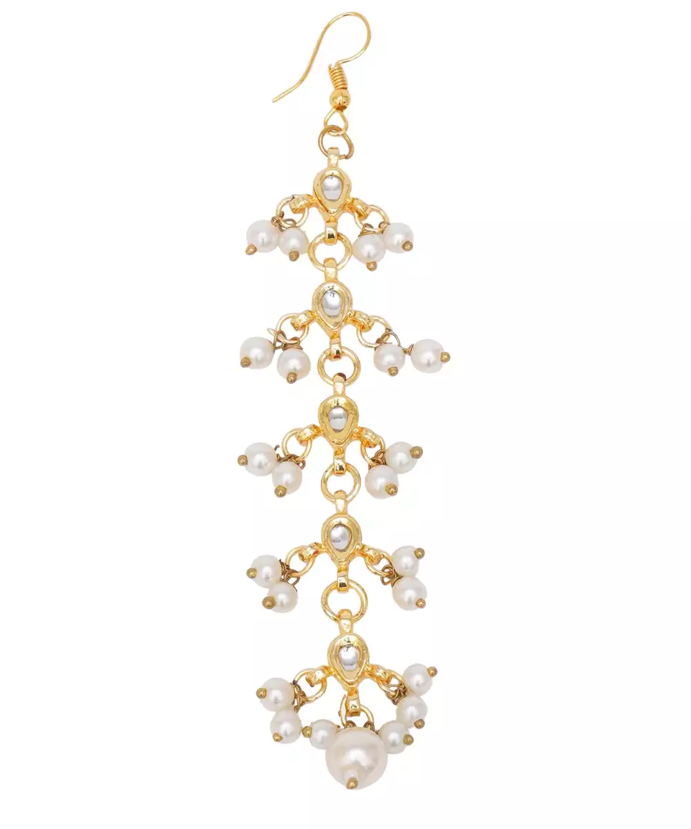 Girls Gold Plated Kundan Studded & Beaded Maang Tikka