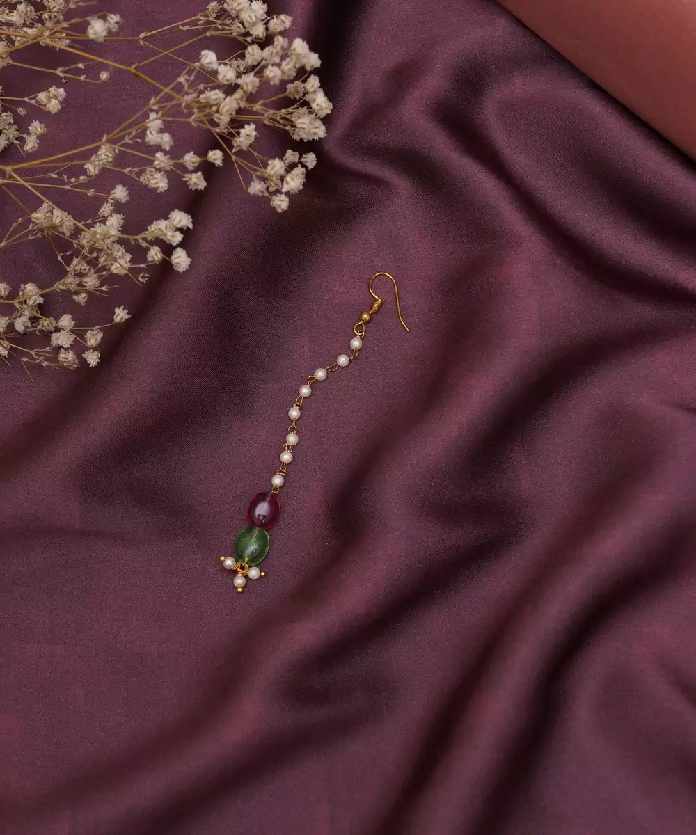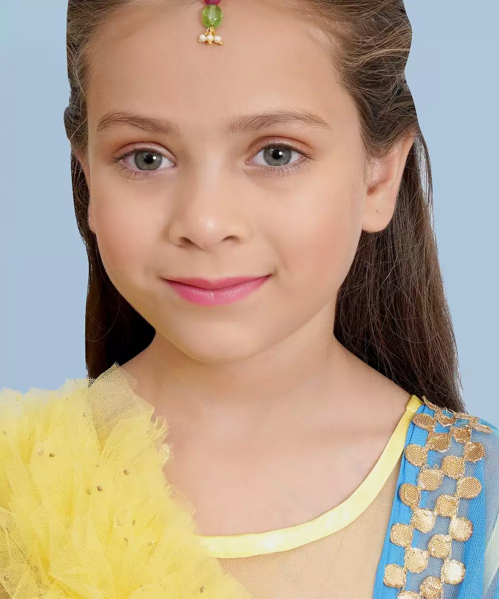 Girls Gold Plated Kundan Studded & Beaded Maang Tikka