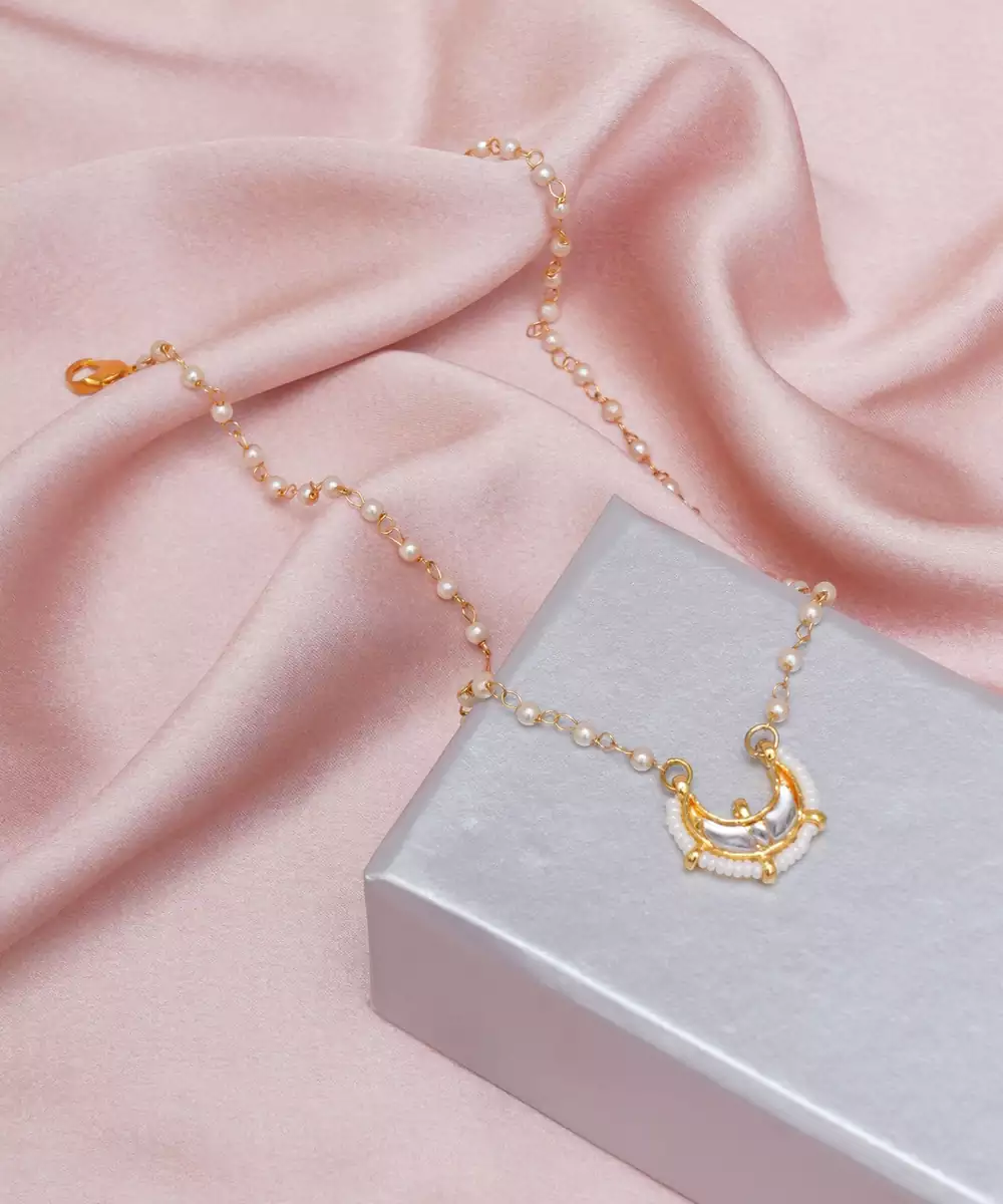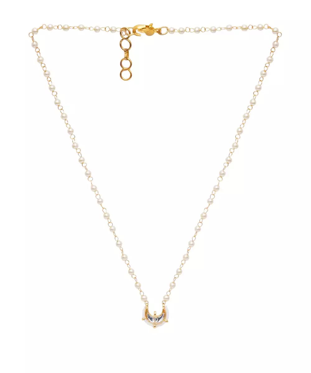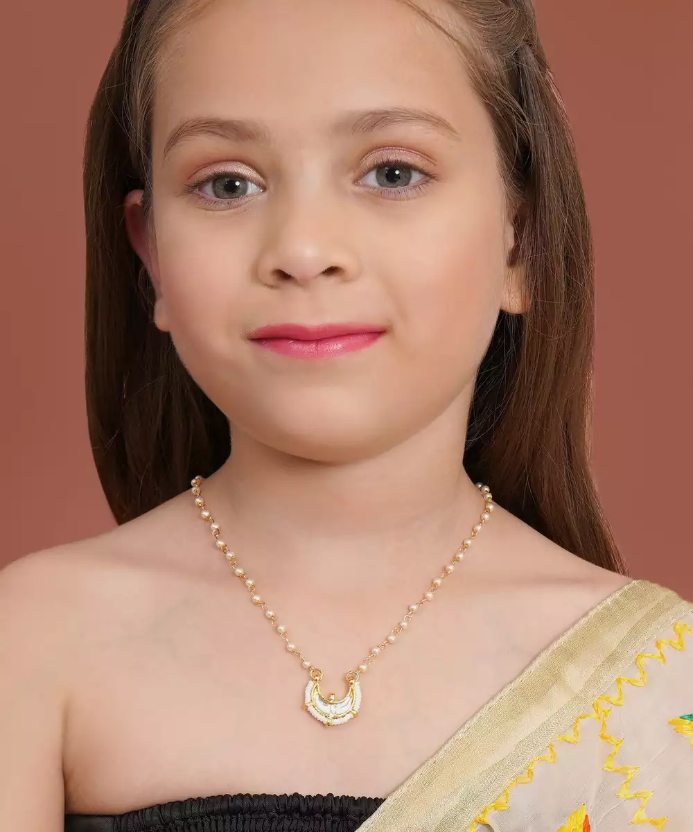 Girls Gold Plated Kundan Studded & Beaded Necklace