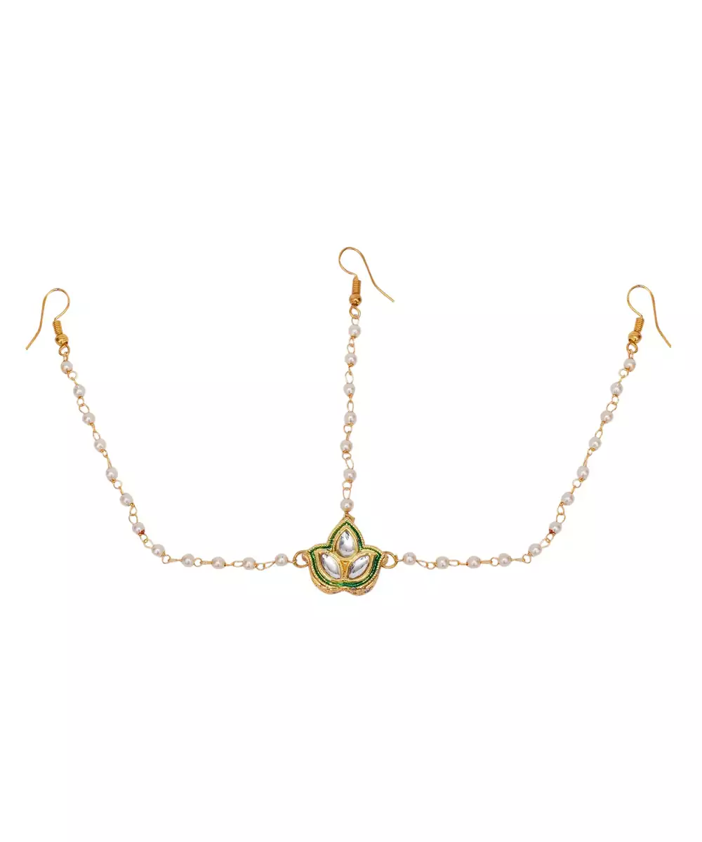 Girls Gold Plated Kundan Studded & Beads Beaded Layered Matha Patti
