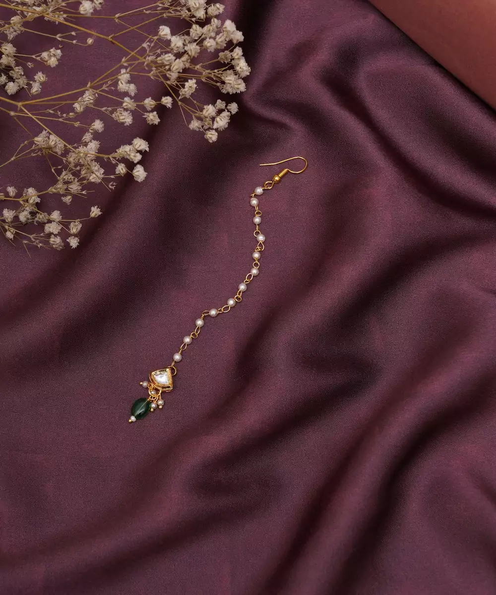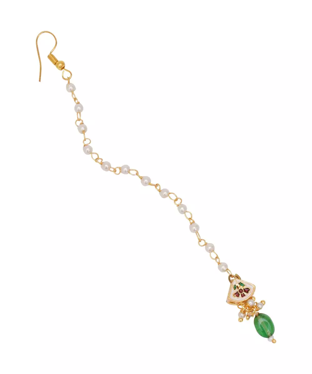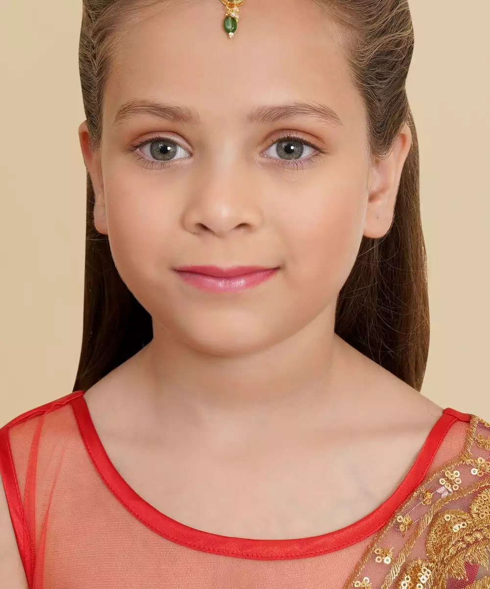 Girls Gold Plated Kundan Studded & Beads Beaded Maang Tikka