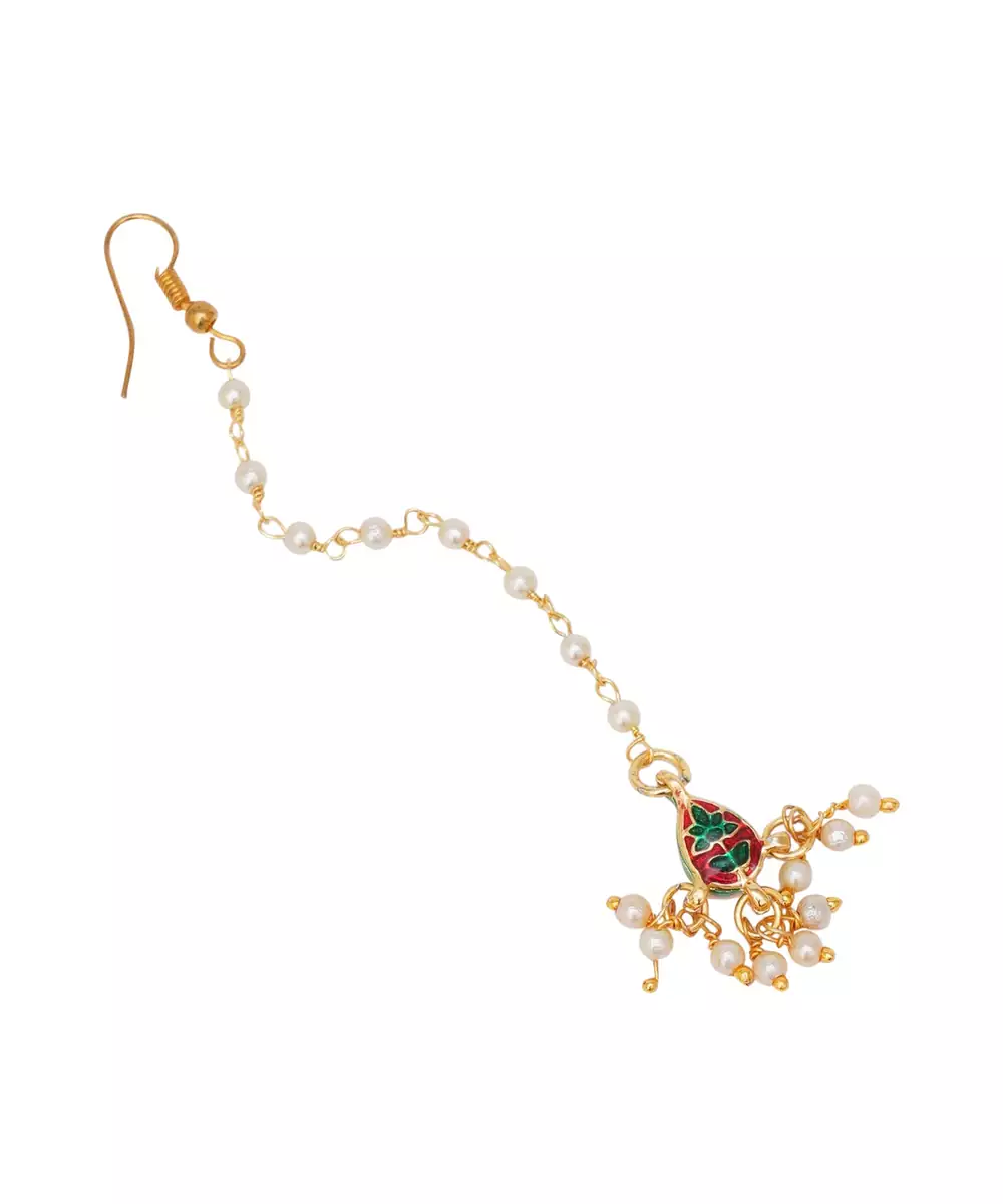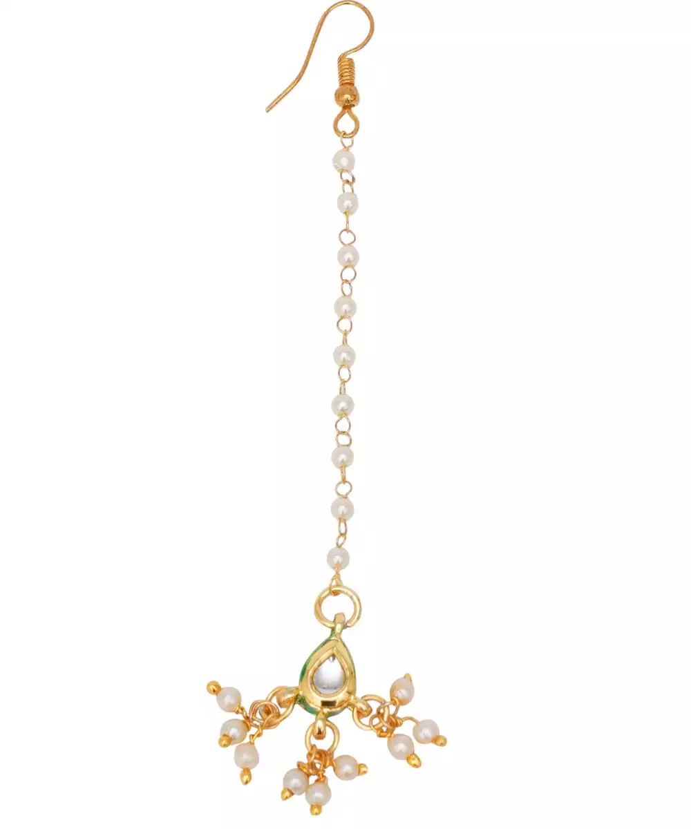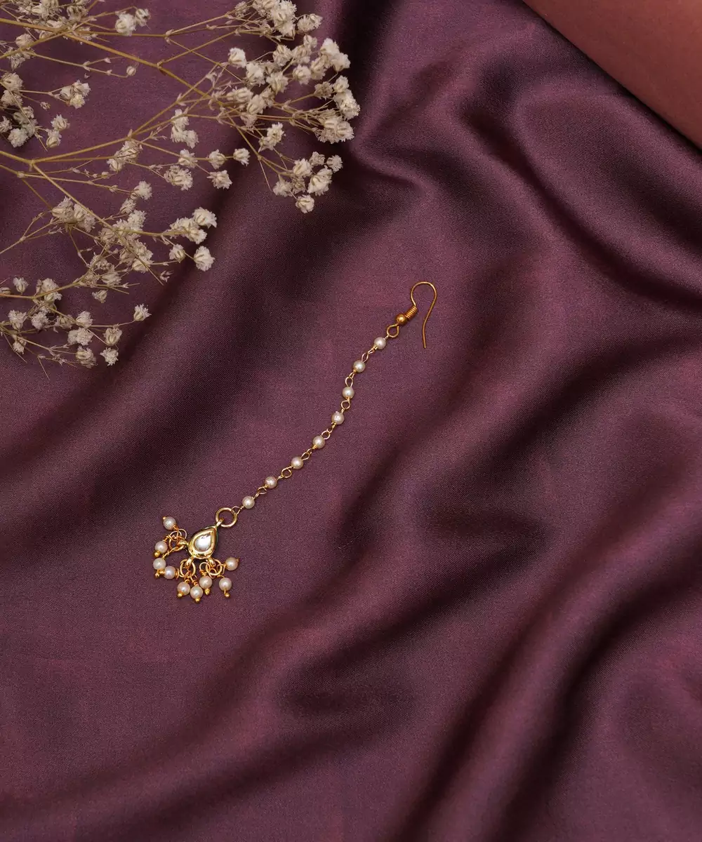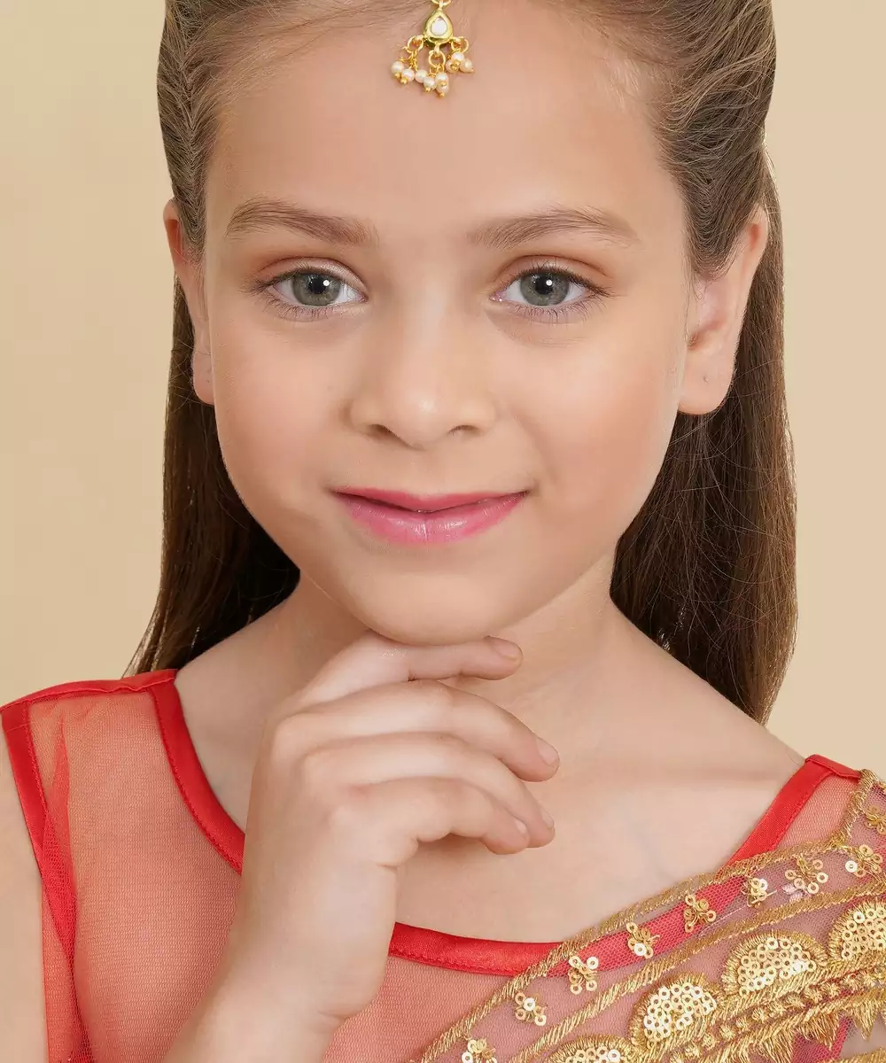 Girls Gold Plated Kundan Studded Beads Beaded Maang Tikka