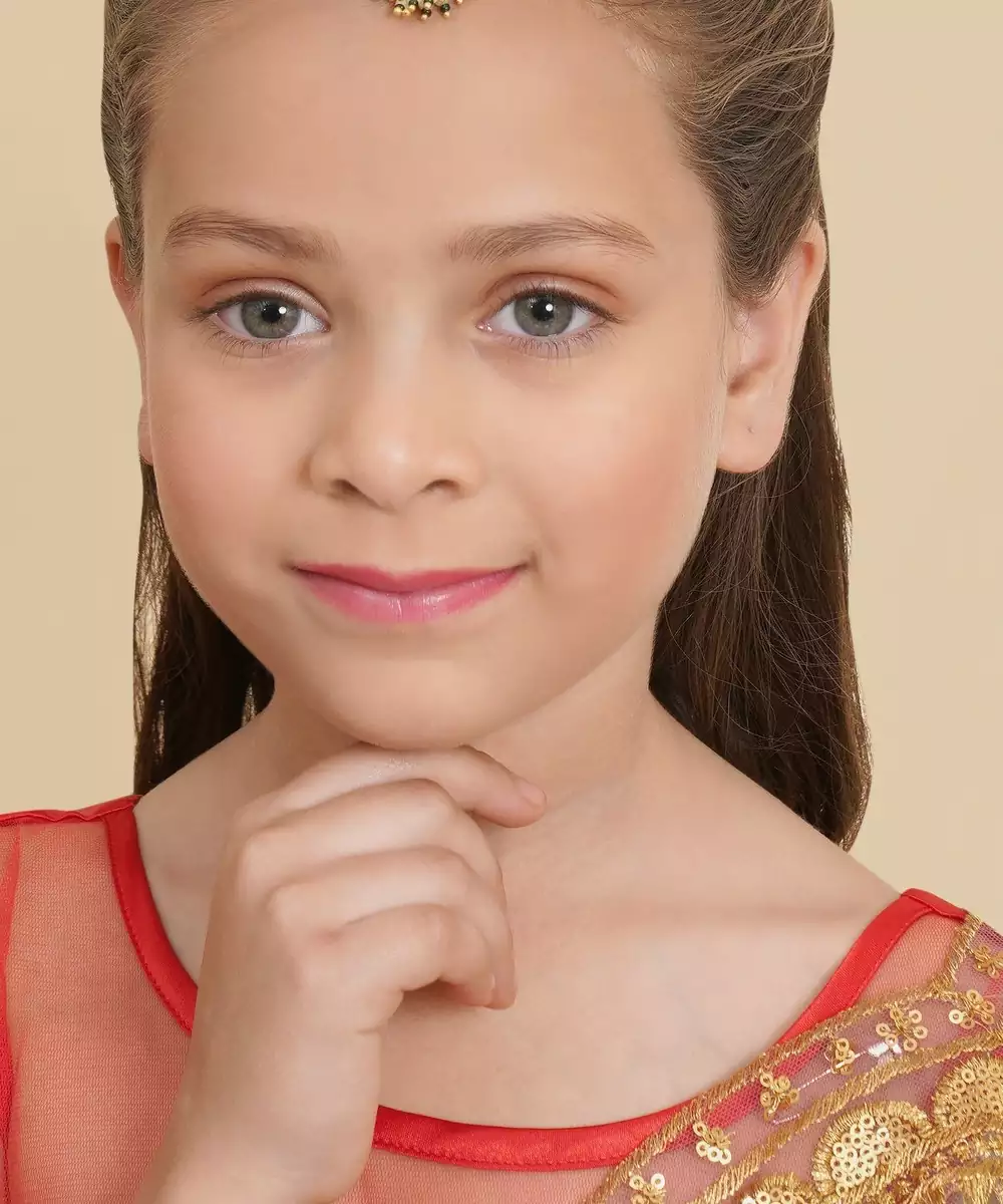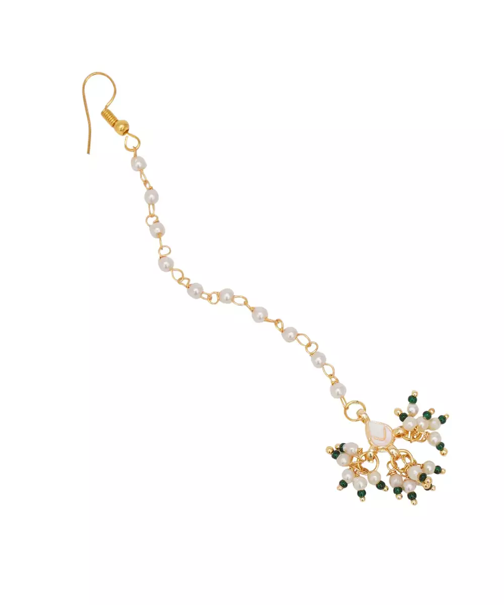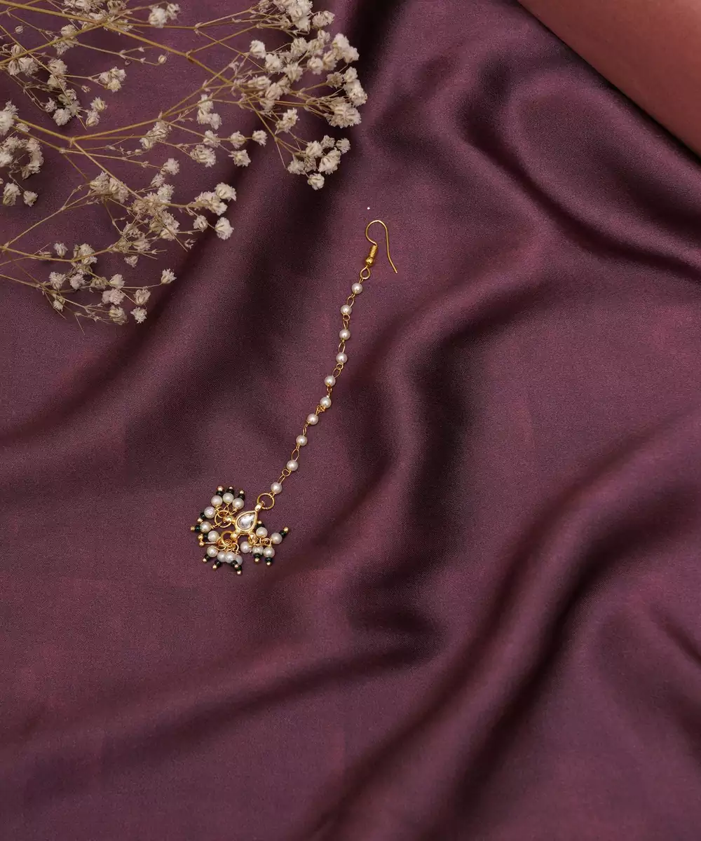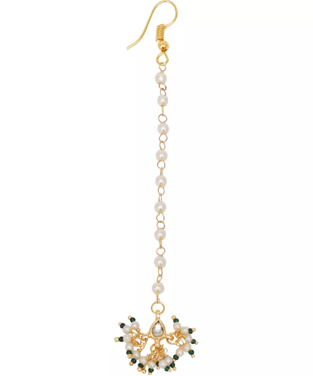 Girls Gold Plated Kundan Studded Beads Beaded Maang Tikka