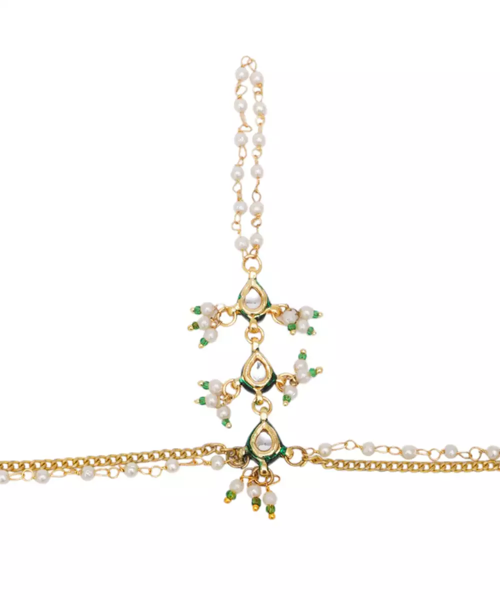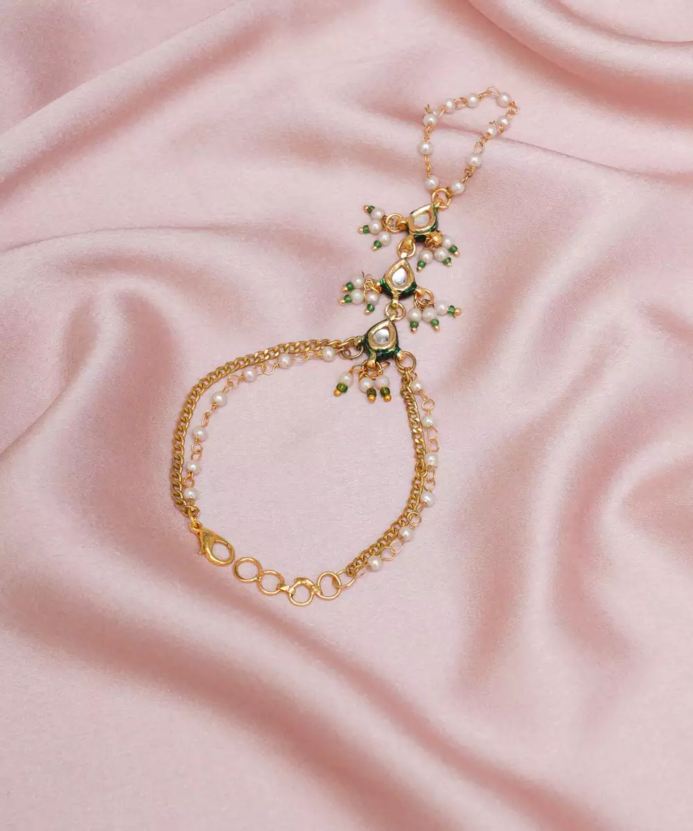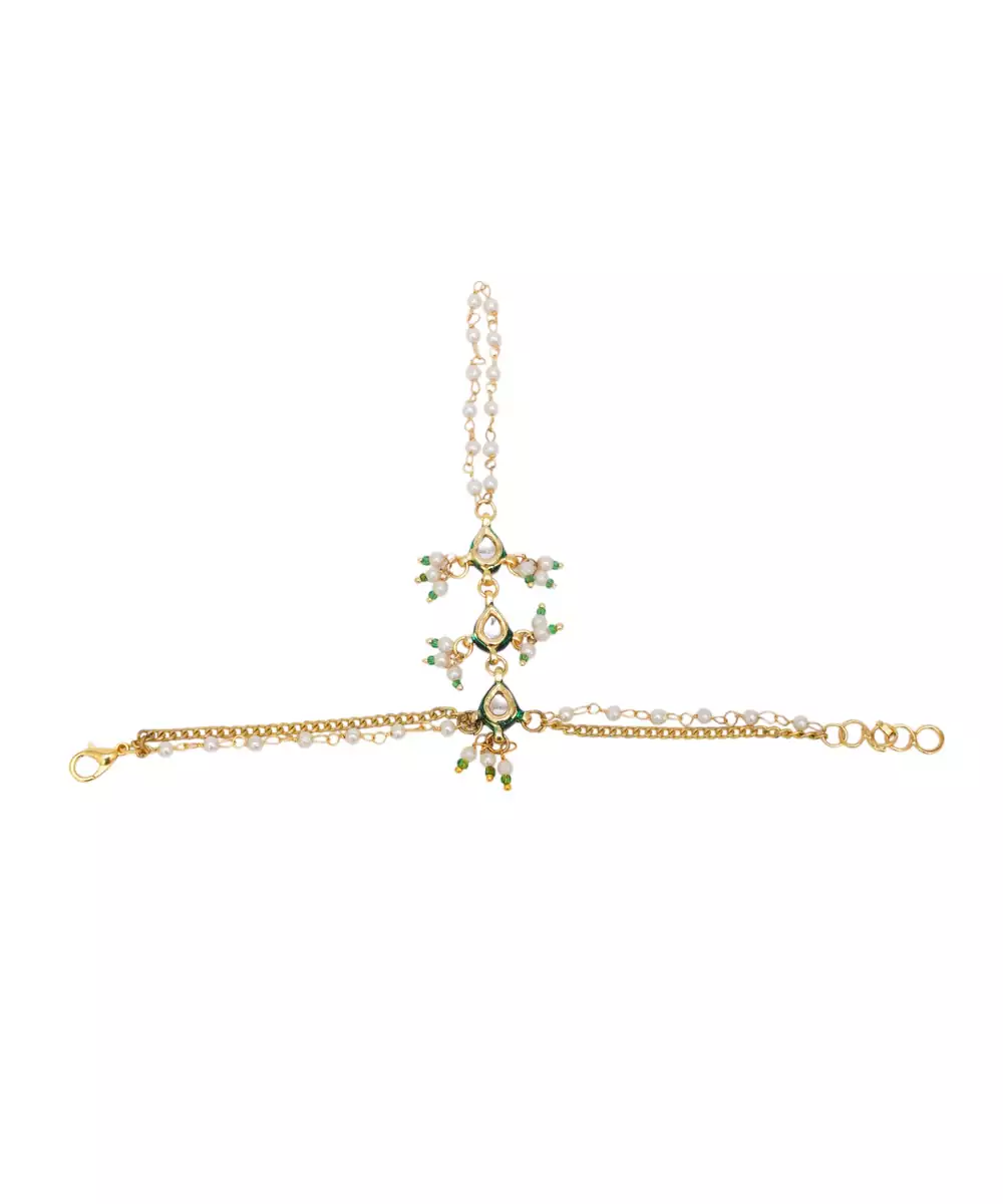 Girls Gold Plated Kundan Studded & Beads Beaded Ring Bracelet