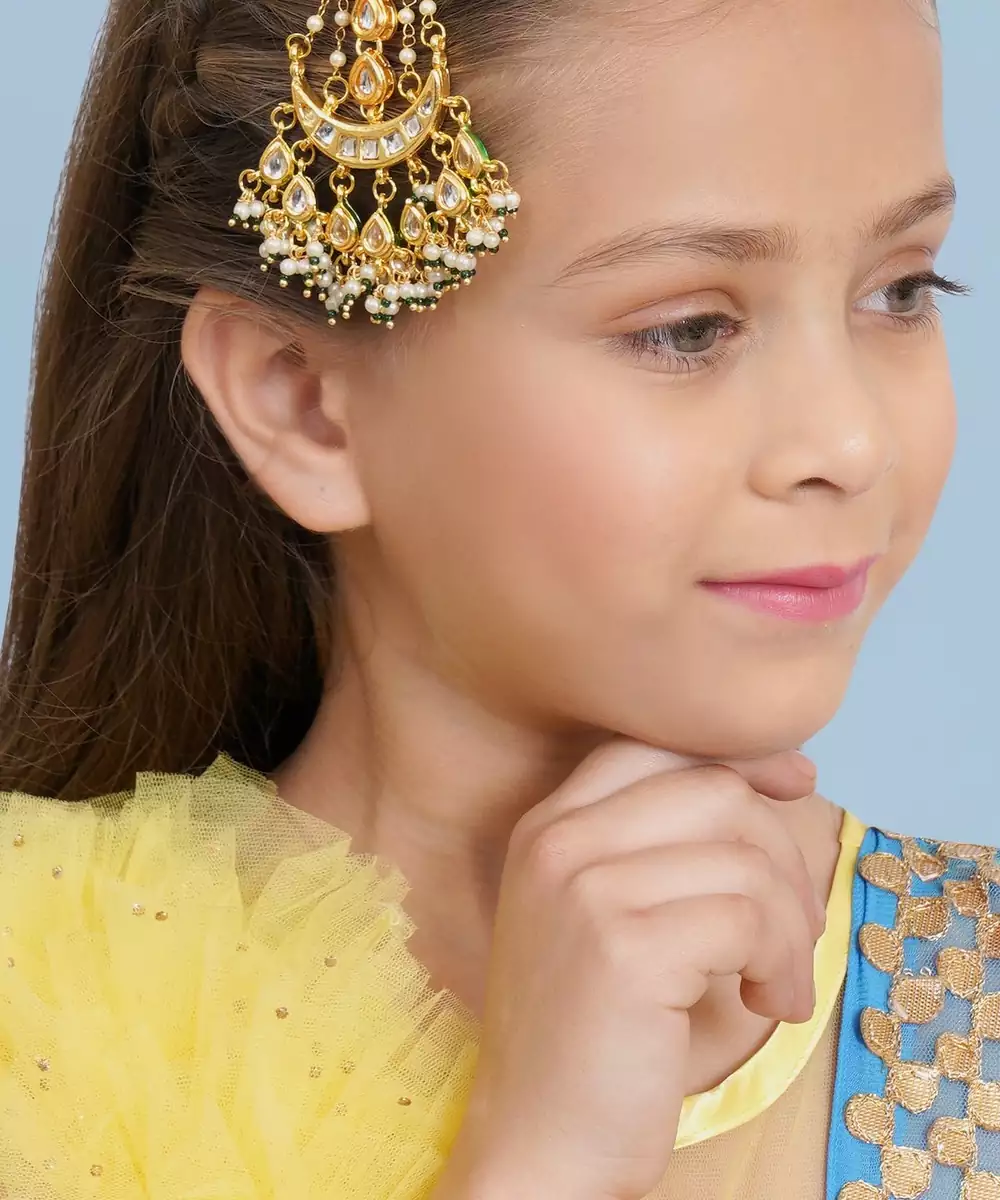 Girls Gold Plated Kundan Studded