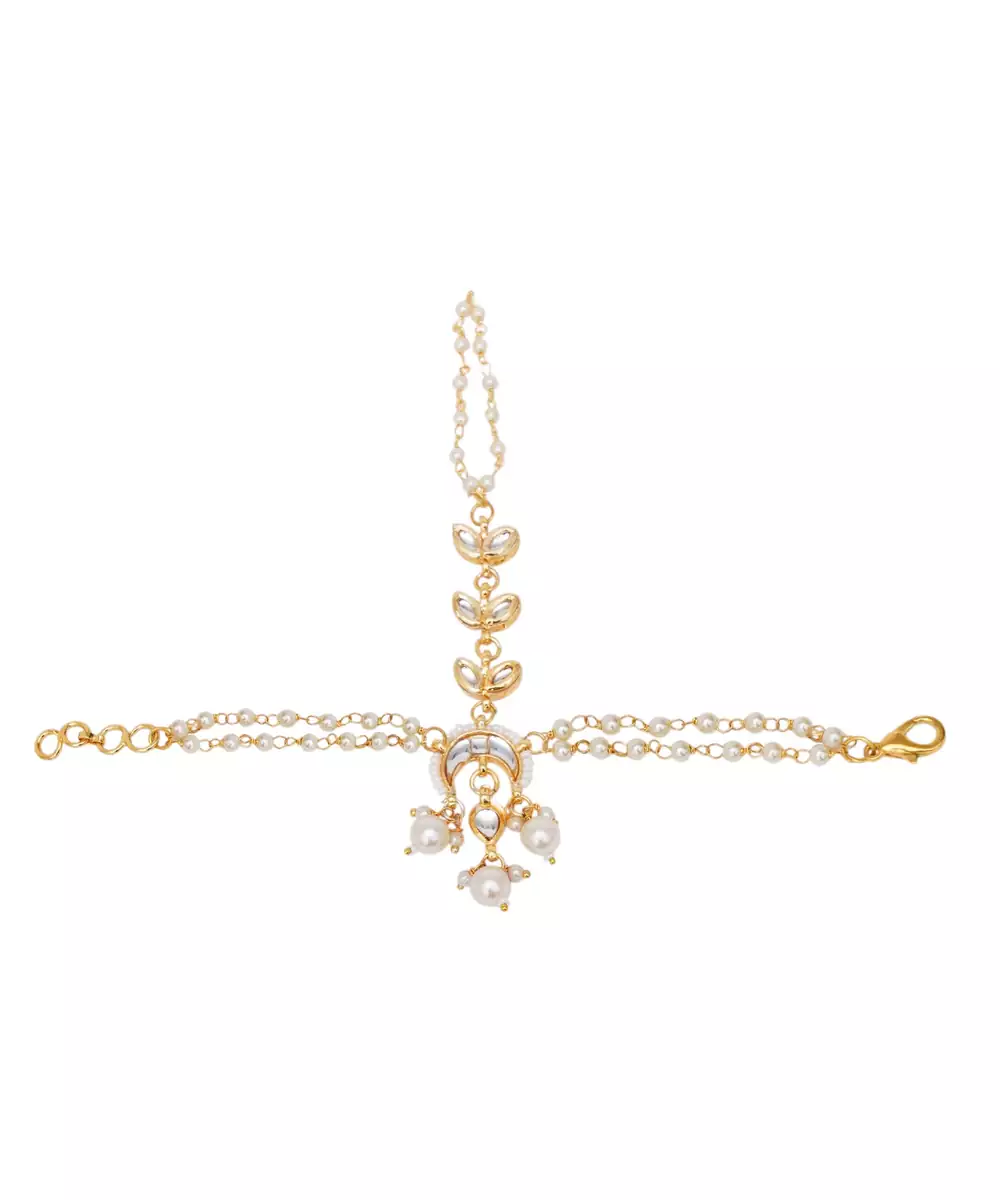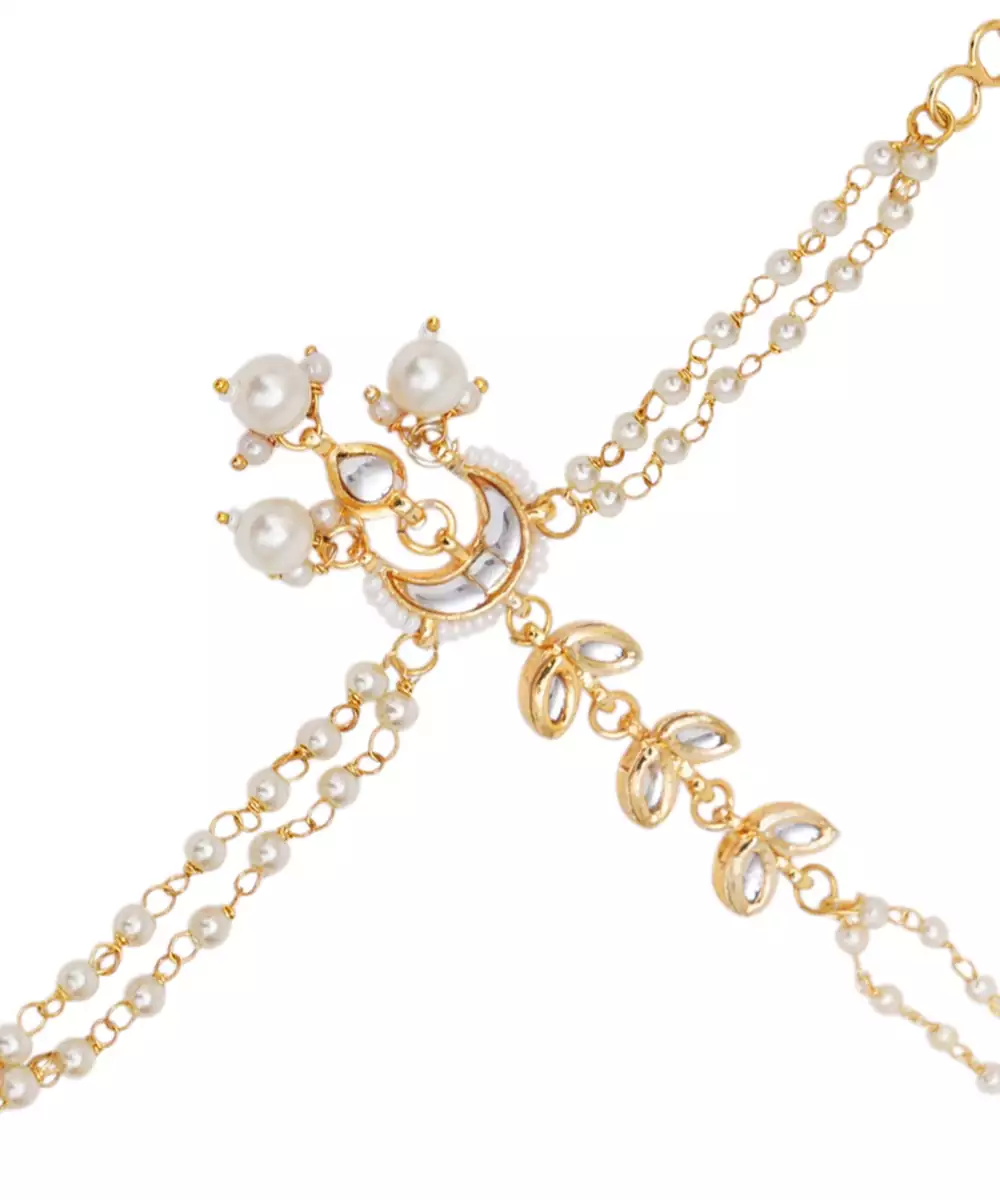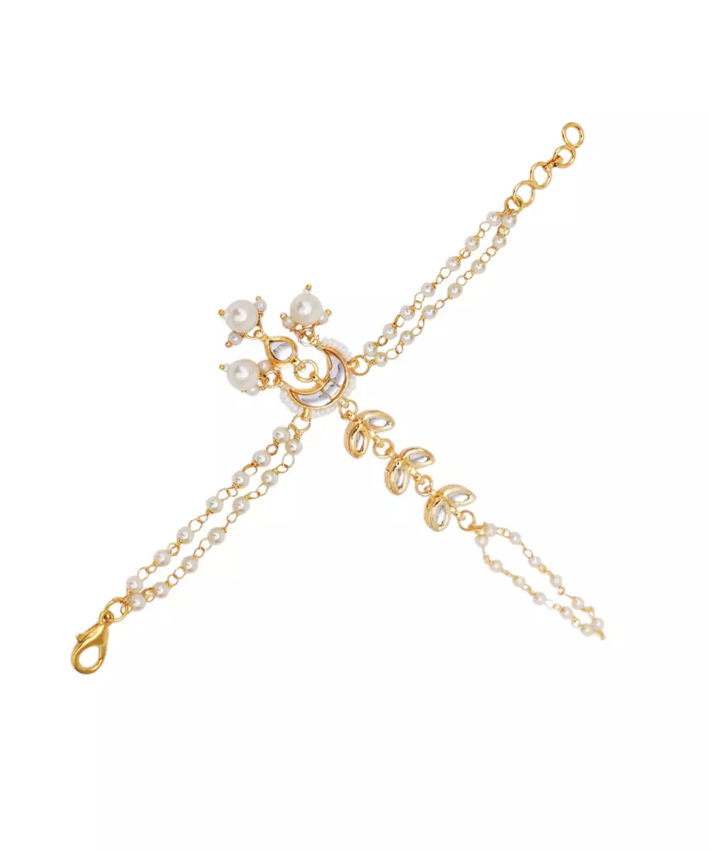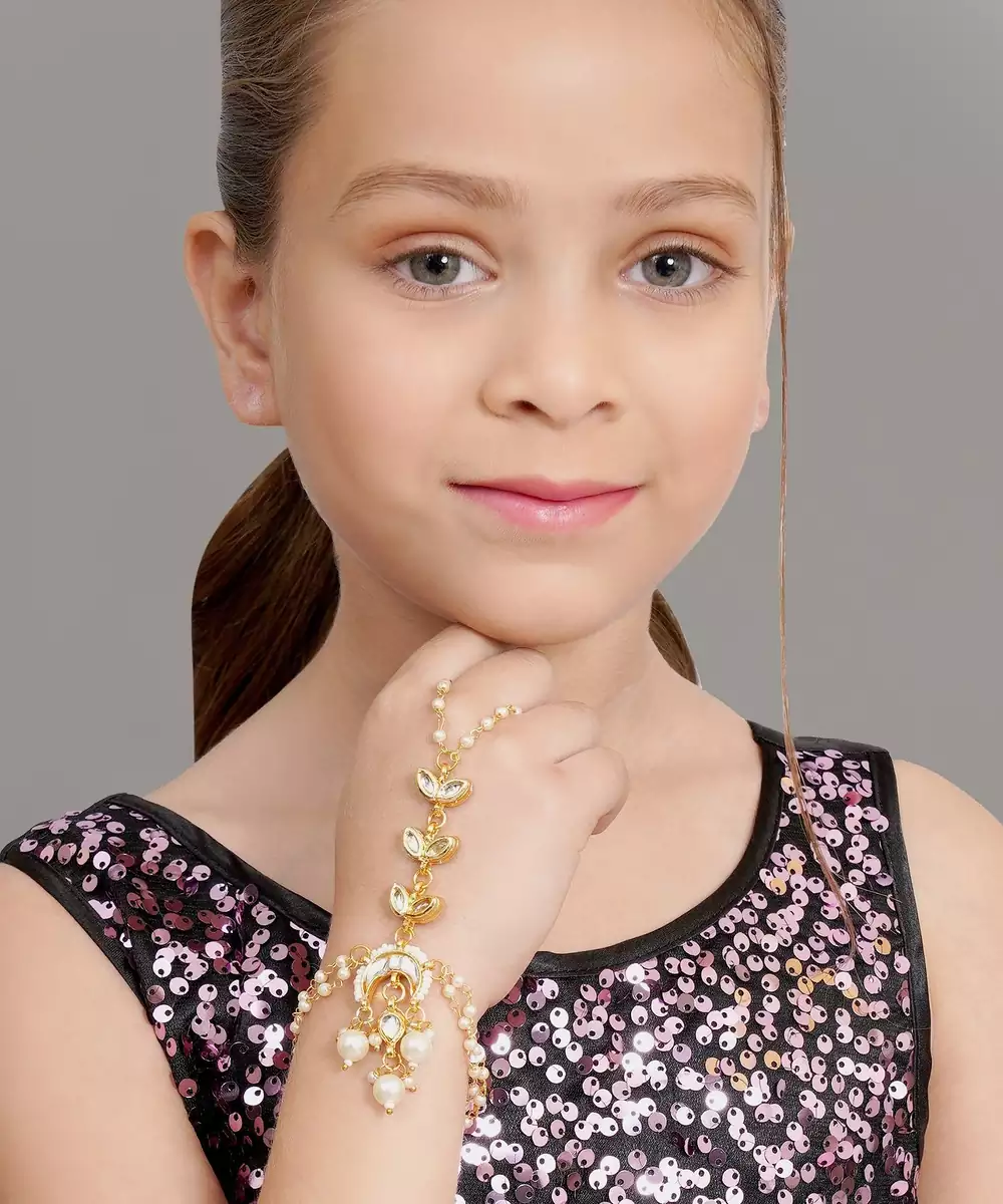 Girls Gold Toned Kundan Handcrafted Gold Plated Bangle Style Bracelet