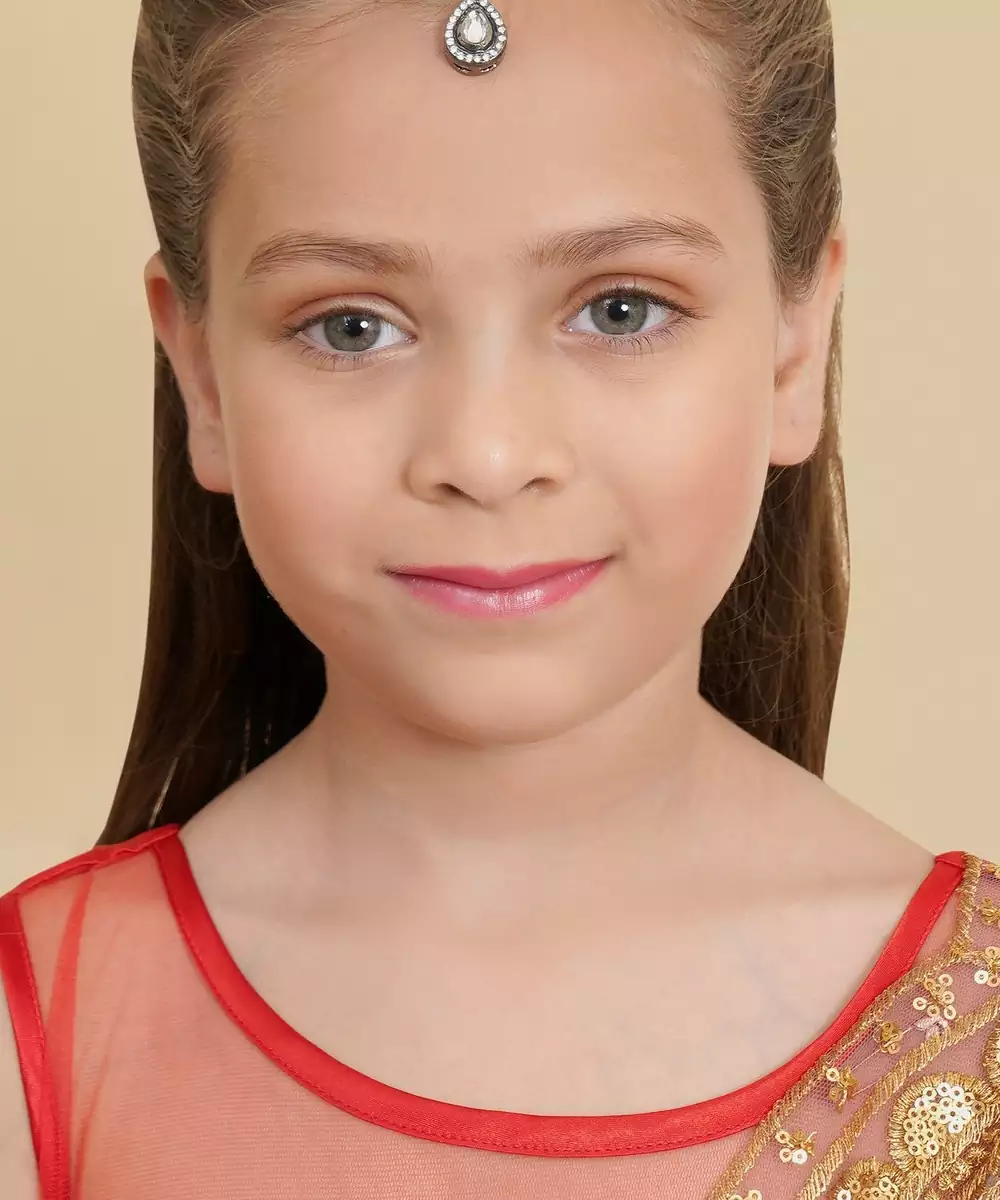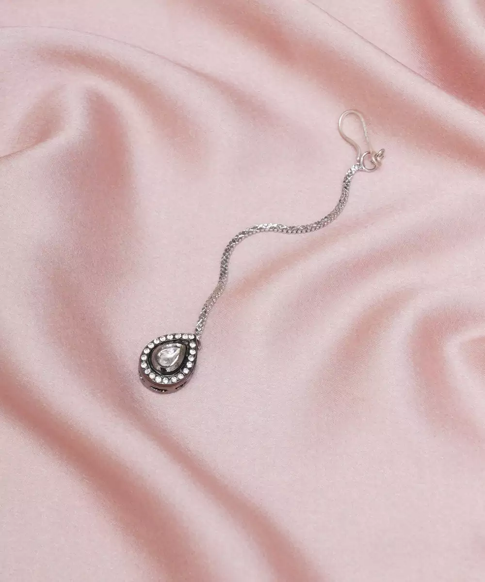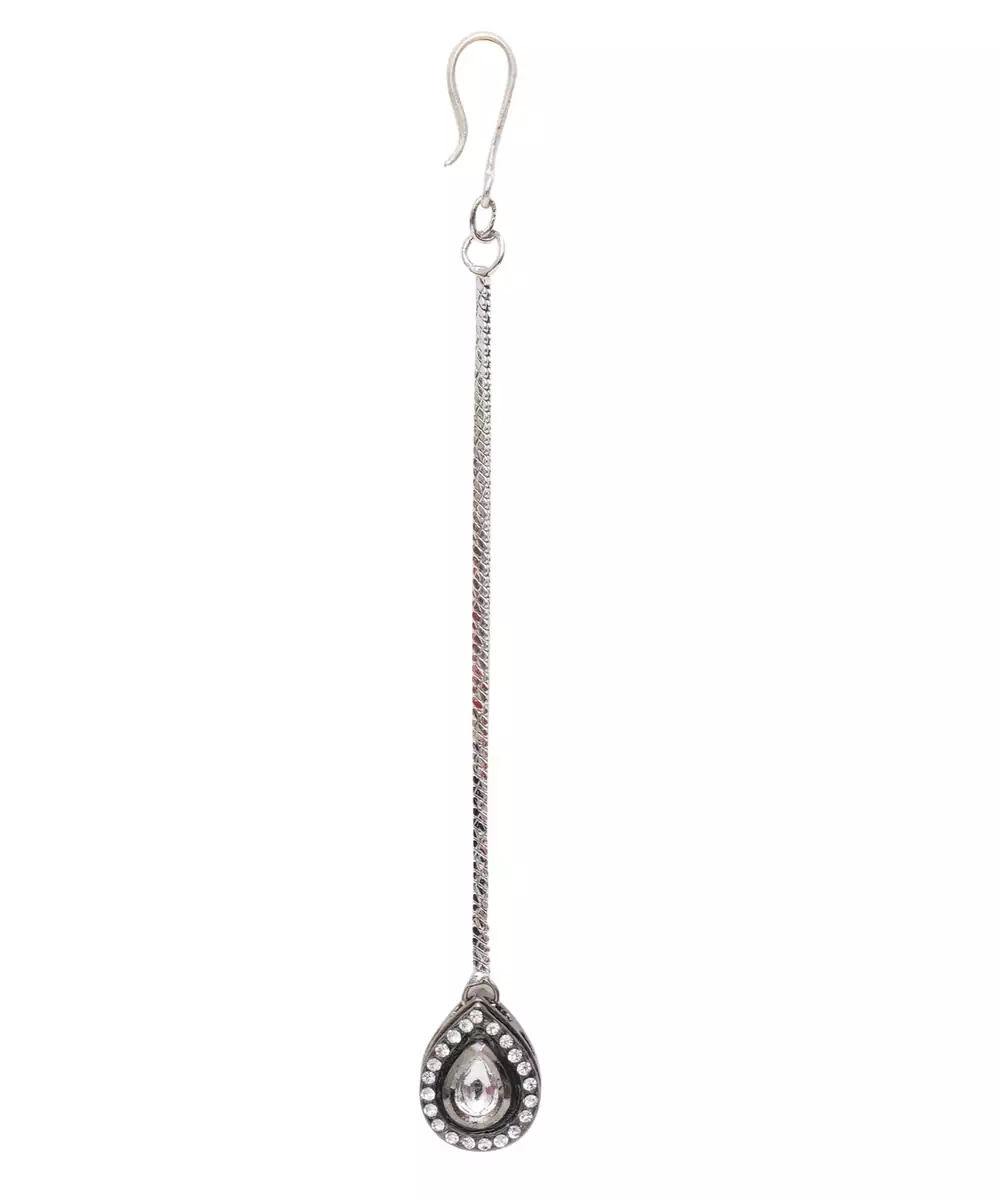 Girls Silver Plated Kundan Stone Studded Maang Tikka