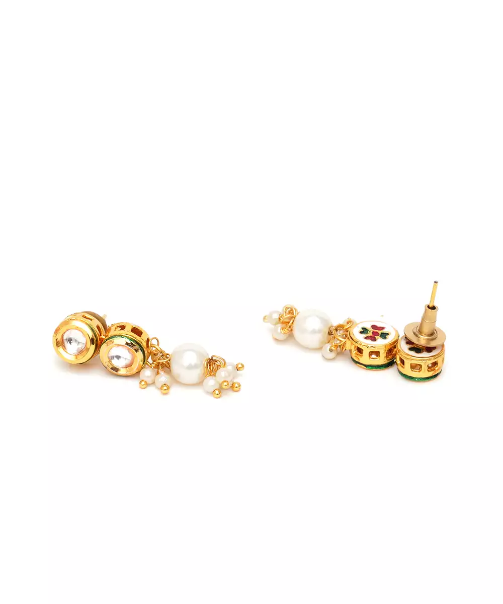 Featuring Kundan Earrings With Pearl Drops. Double Round Kundan Earrings With Pearls, Easy Breezy Earrrings To Wear From Day To Night. .