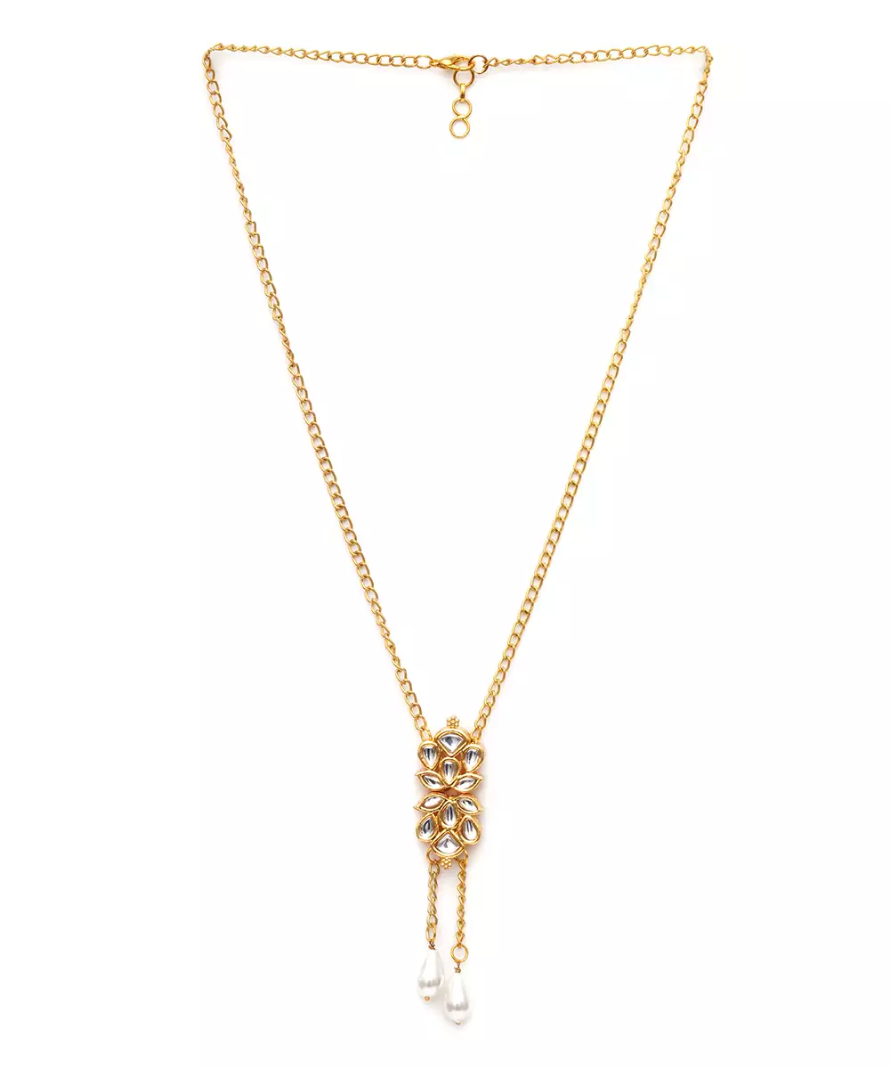 Featuring Long Kundan Neckpiece. Designer Kundan Golden Neckpiece With Center Kundan Piece, Our Proper Patola Collection Has A Lot Of Easy To Wear Day To Night Kundan Neckpiece And Stone Neckpieces That Look Extrremely Chic And Can Be Styled With Indian And Western Outfits. .
