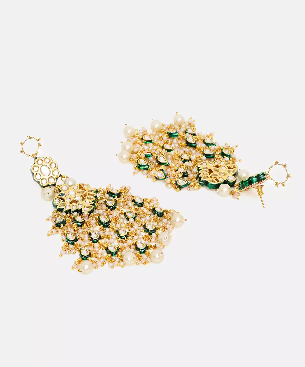 This Multicolor Gold Kundan Beaded Earring Showcases Vibrant Elegance With Its Intricate Craftsmanship And Rich Detailing. Embellished With Classic Kundan Work And Colorful Beads, It Adds A Festive, Eye Catching Charm. Perfect For Weddings, Celebrations, And Special Occasions, It Beautifully Enhances Ethnic Ensembles With A Touch Of Traditional Luxury.