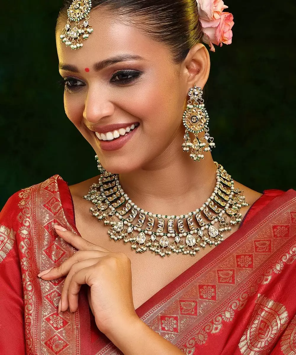 Components: 1 Necklace / 1 Pair Of Earrings / 1 Maang Tikka