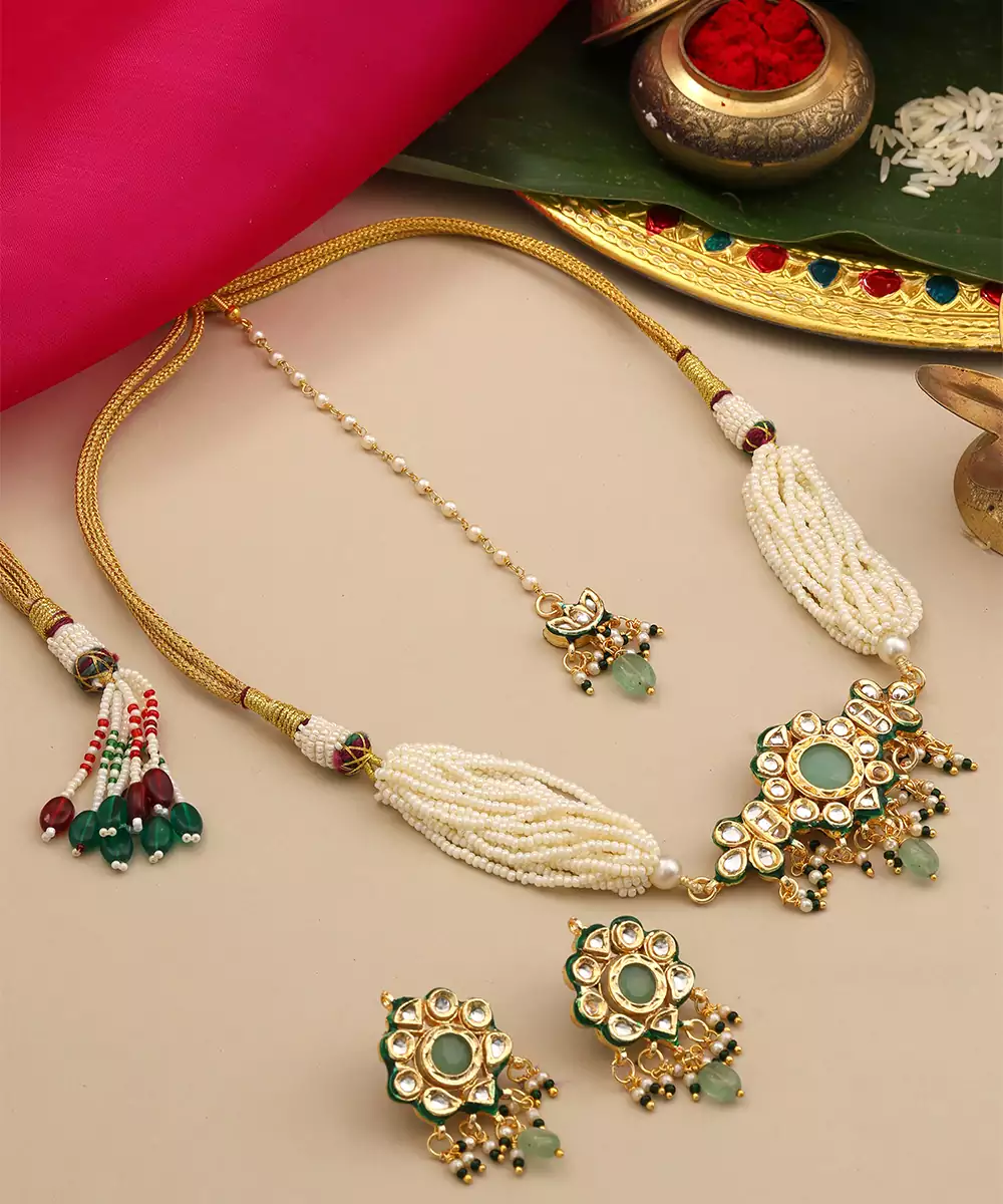 Components: 1 Necklace / 1 Pair Of Earring / 1 Maang Tikka