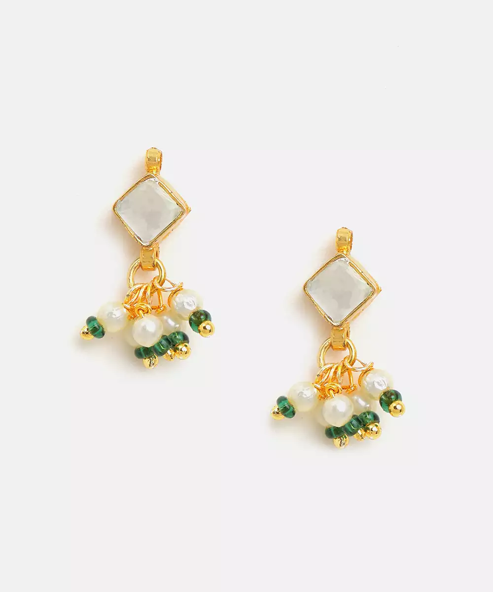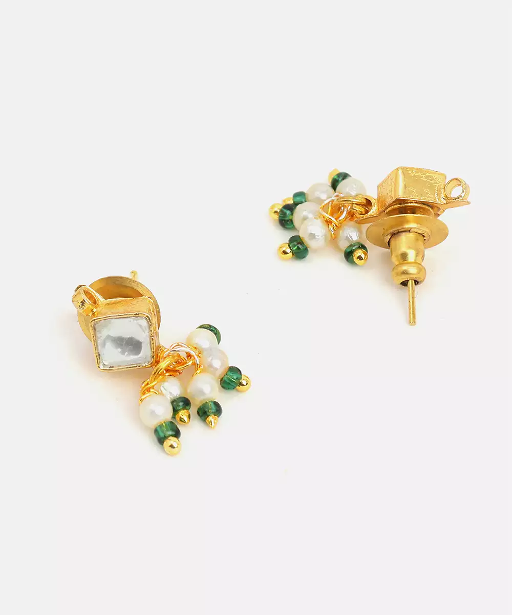 Gold Plated Kundan Green Stones Earrings