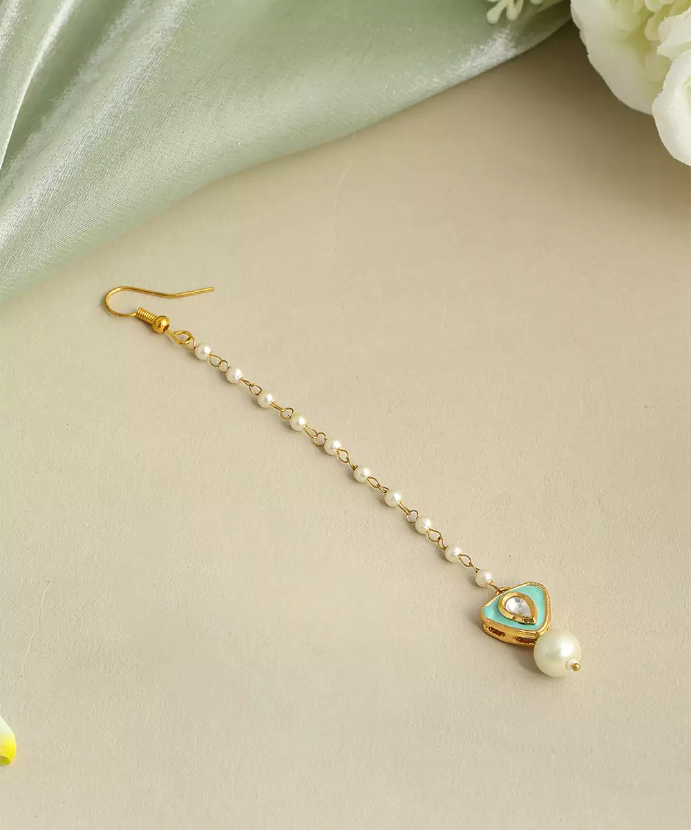 Adorned With Vibrant Green Stones, This Gold Plated Kundan Maang Tikka Reflects Classic Charm And Timeless Beauty. The Finely Designed Structure Ensures Comfort And Visual Balance. Ideal For Bridal And Festive Occasions, It Complements Traditional Attire With A Graceful And Luxurious Appearance.