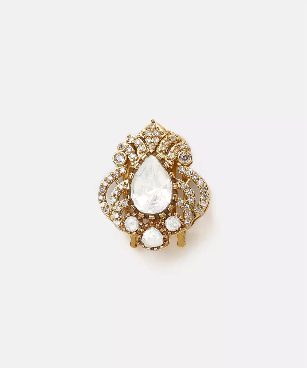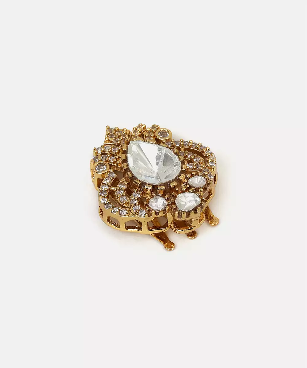 This Gold Plated Kundan Hair Clip Showcases Delicate Craftsmanship And Timeless Beauty. Designed With Traditional Kundan Work, It Creates A Stylish Accent For Special Occasion Hairstyles. Ideal For Weddings And Festive Events, This Hair Clip Complements Ethnic Attire With A Touch Of Sophistication And Regal Appeal.