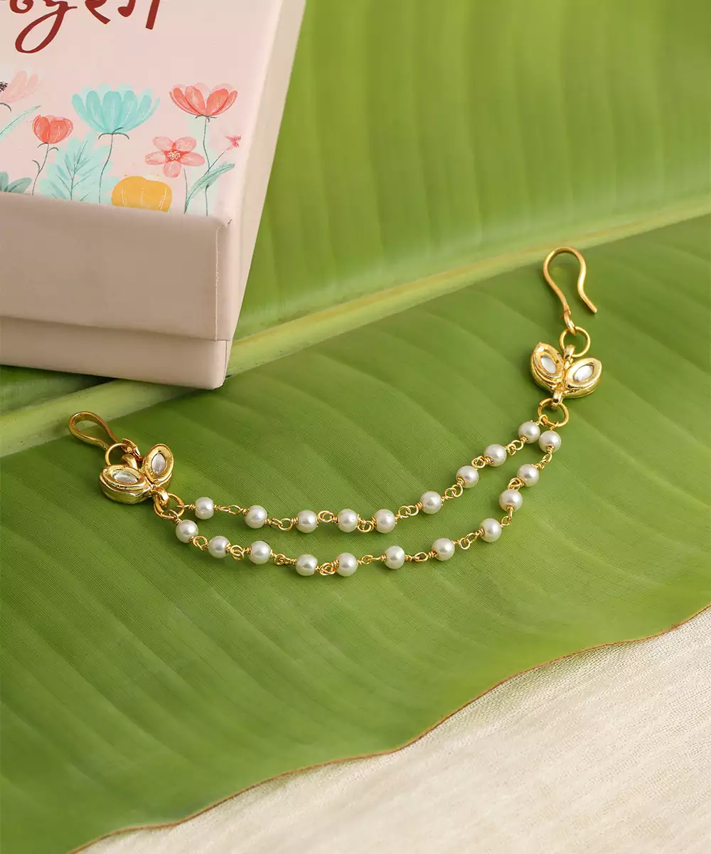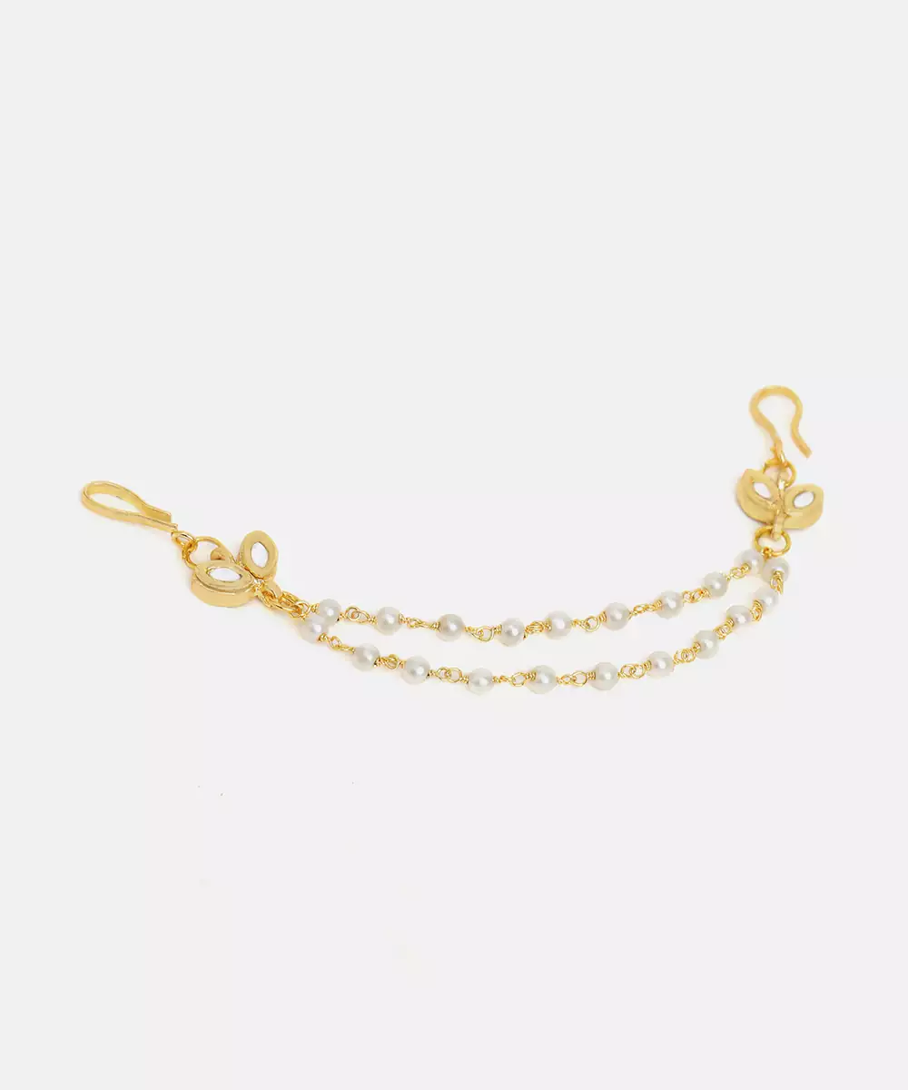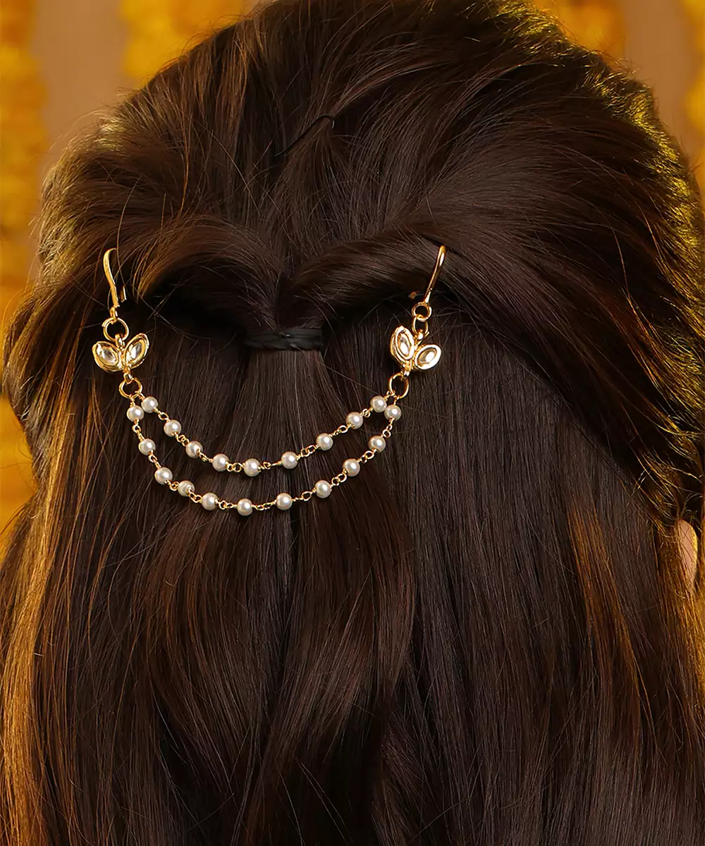 This Gold Plated Kundan Hair Clip Features Elegant Traditional Craftsmanship With A Polished Finish. Designed To Secure Hair Comfortably While Adding Ornamental Beauty, It Enhances Bridal Buns And Festive Hairstyles. Ideal For Weddings And Cultural Occasions, It Pairs Perfectly With Ethnic Attire For A Refined Look.