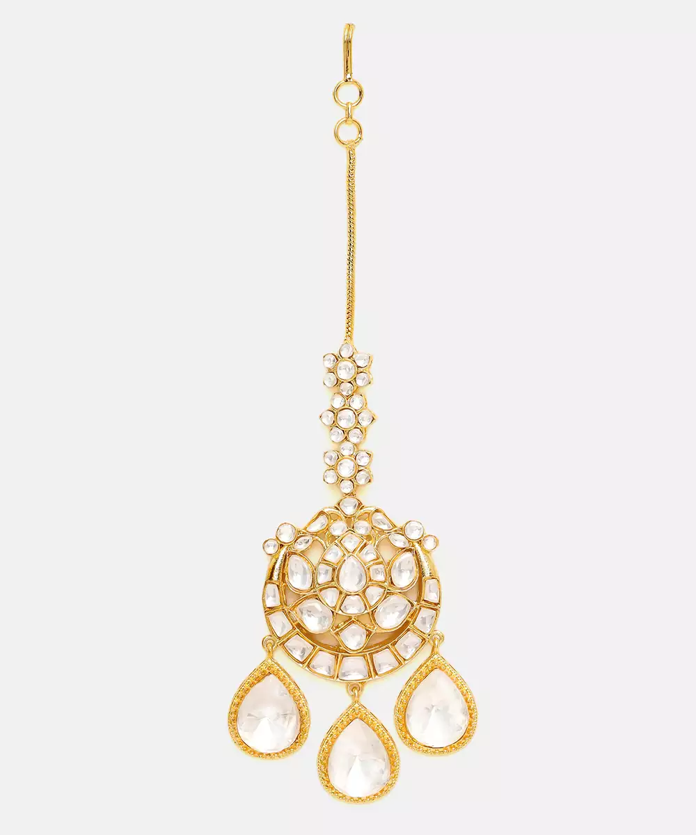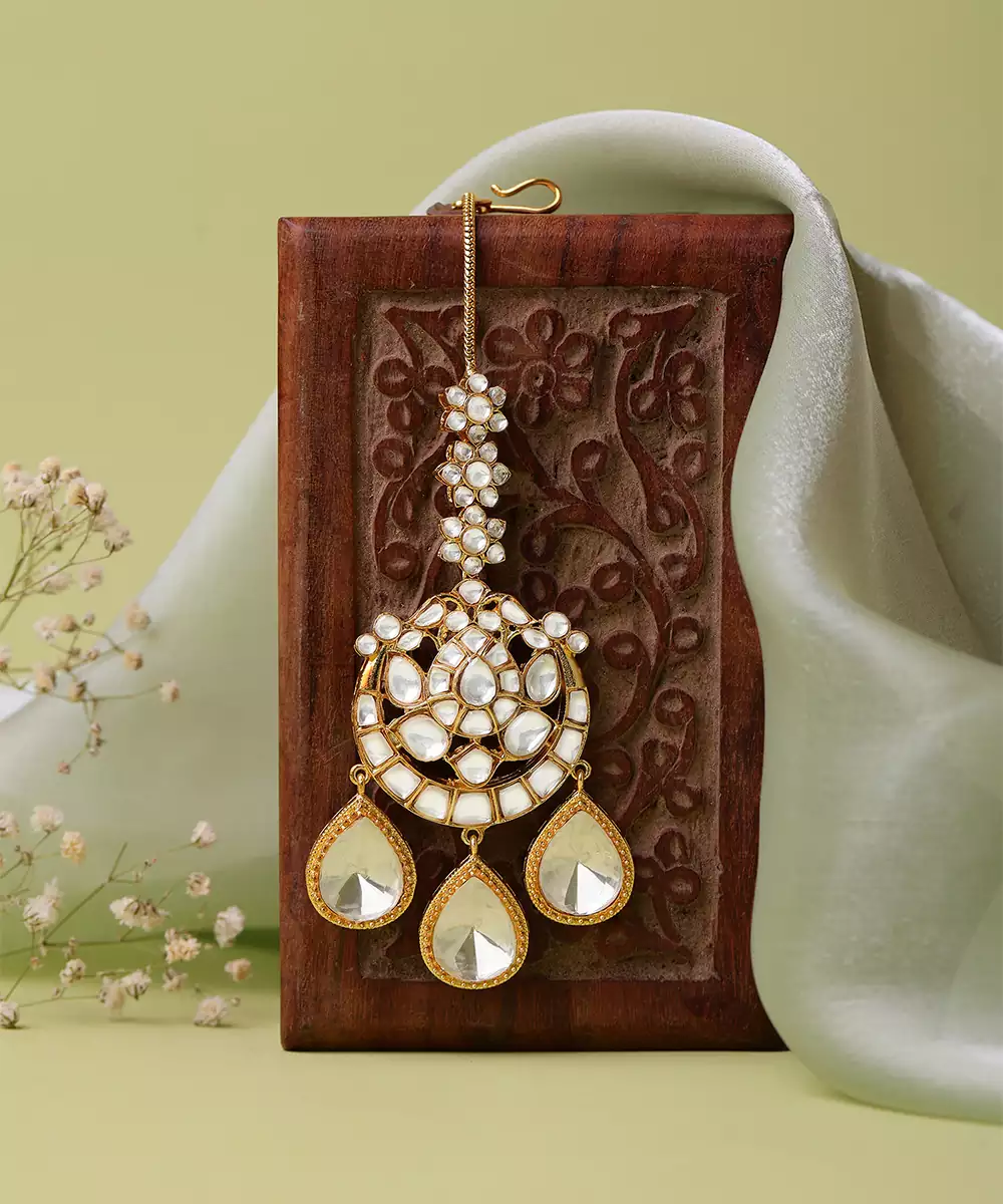 This White Gold Kundan Maang Tikka Exudes Timeless Elegance With Its Intricate Craftsmanship And Classic Design. Adorned With Shimmering Kundan Stones In Soft White Tones, It Adds A Regal, Festive Touch. Perfect For Weddings, Celebrations, And Special Occasions, It Beautifully Complements Traditional Bridal And Ethnic Ensembles.