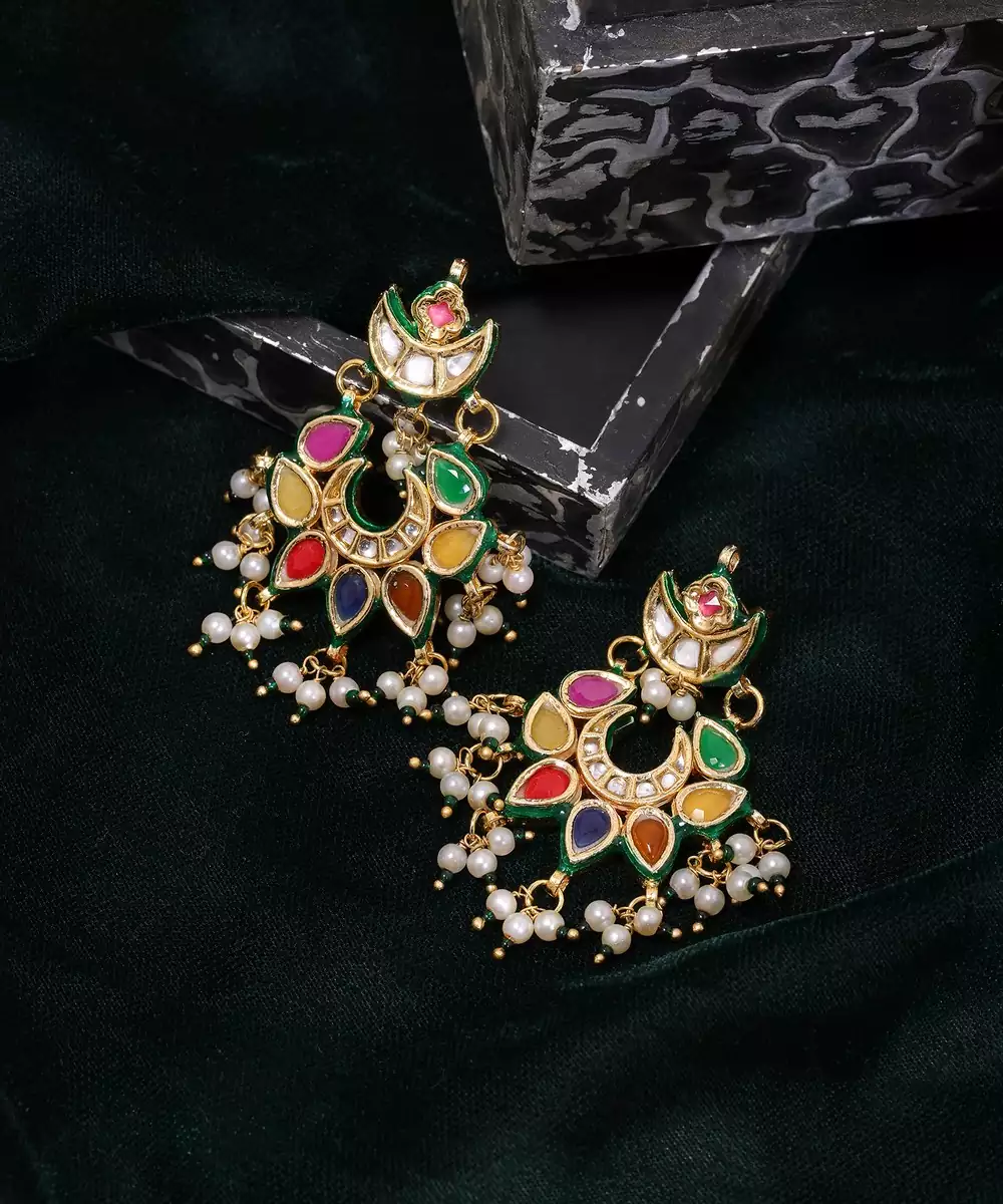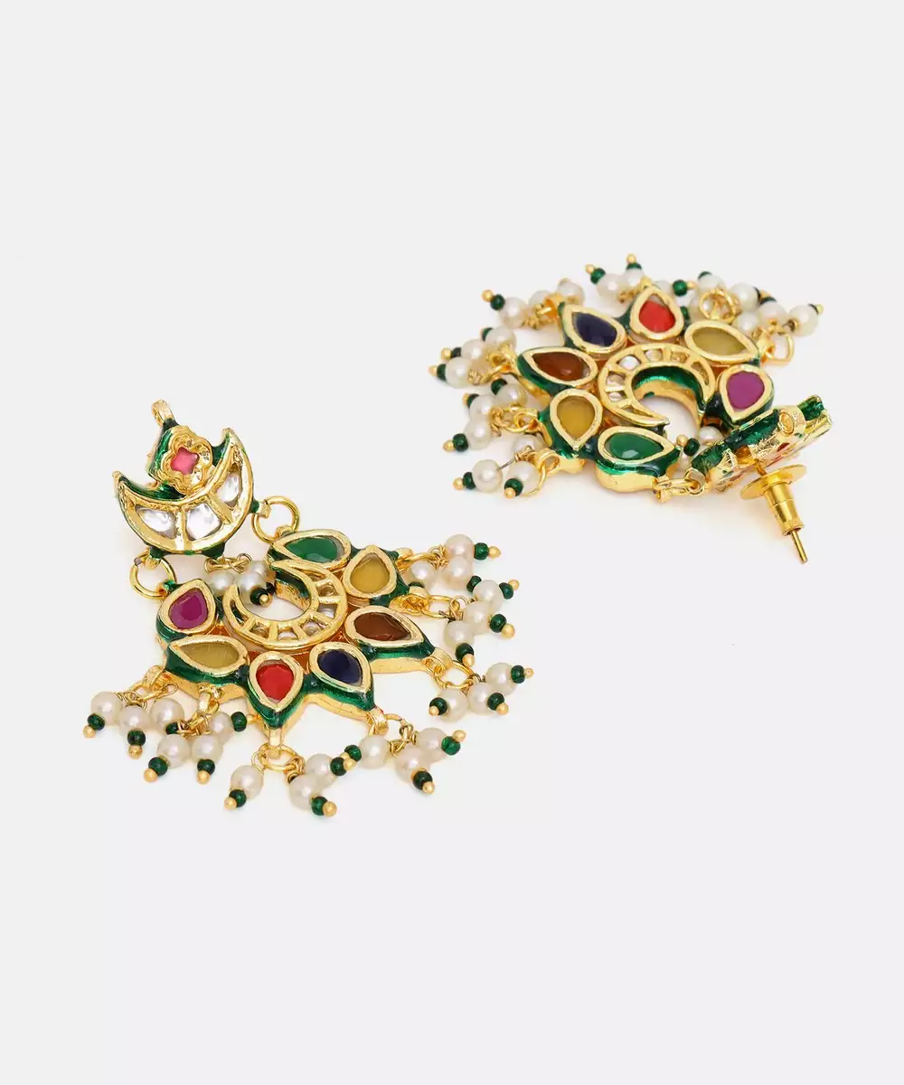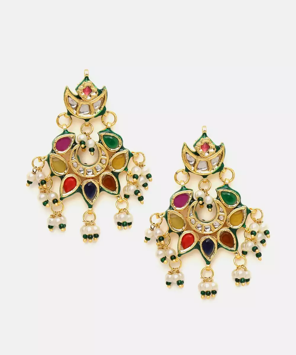 Gold Plated Kundan Multicolor Stone Chandbalis