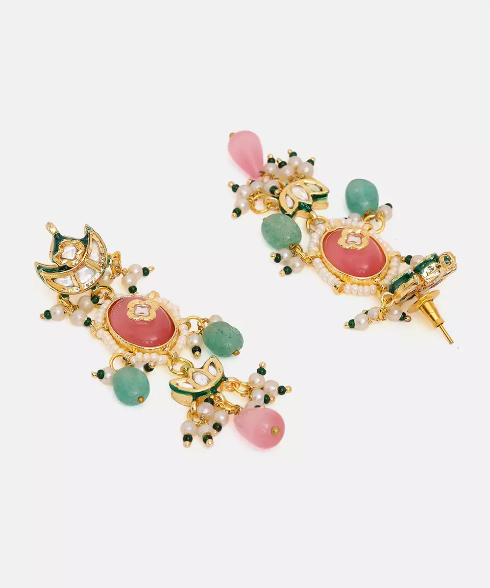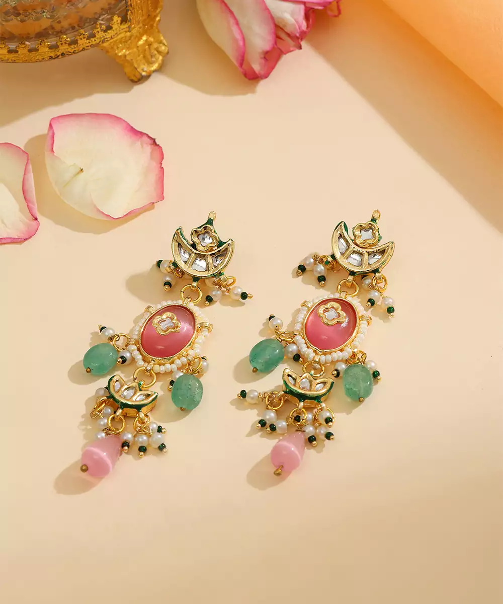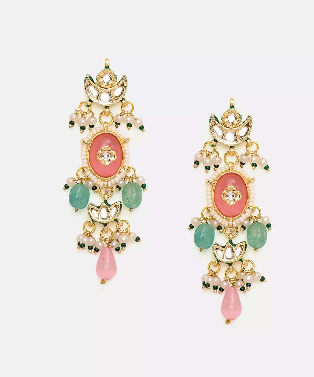 This Gold Plated Kundan Multicolor Stone Earrings Exudes Regal Elegance With Its Rich Tones And Intricate Craftsmanship. Adorned With Classic Kundan Detailing And Vibrant Green Accents, It Adds A Luxurious, Traditional Touch. Perfect For Weddings, Festive Celebrations, And Special Occasions, It Beautifully Complements Ethnic Ensembles With Timeless Charm And Sophistication.
