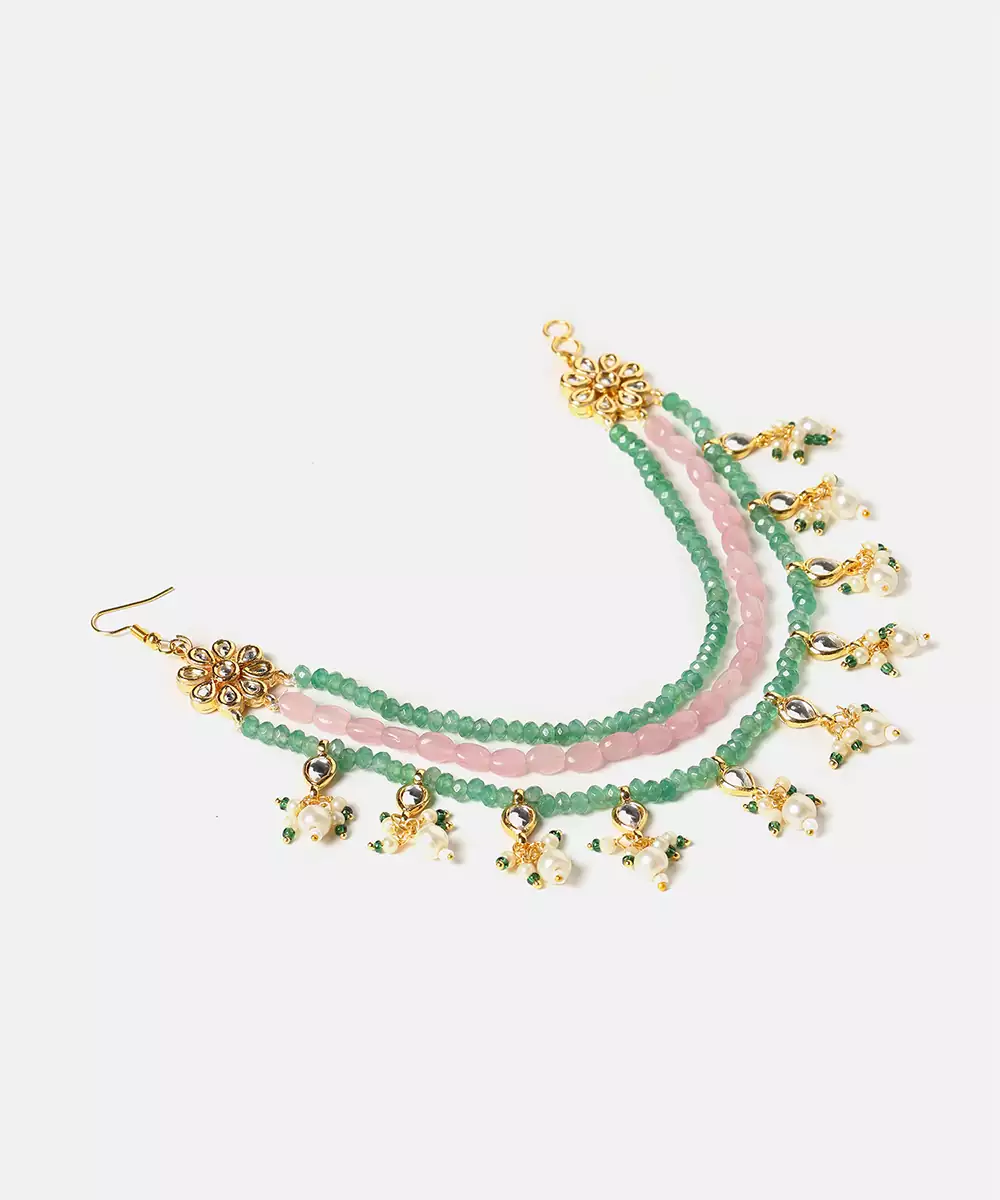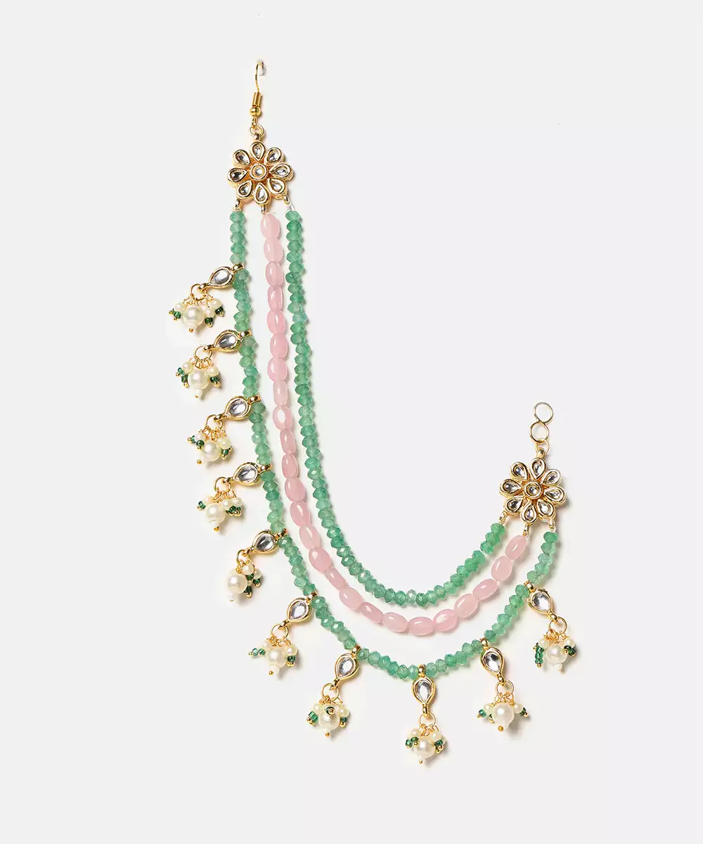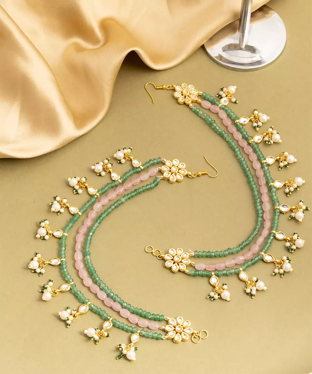 These Gold Plated Kundan Multicolor Stones Chain Earrings Feature Vibrant Hues And Intricate Artistry. Embellished With Colorful Stones And Kundan Work, They Bring Festive Charm To Any Outfit. Ideal For Weddings And Celebrations, These Chain Earrings Pair Beautifully With Traditional Attire.