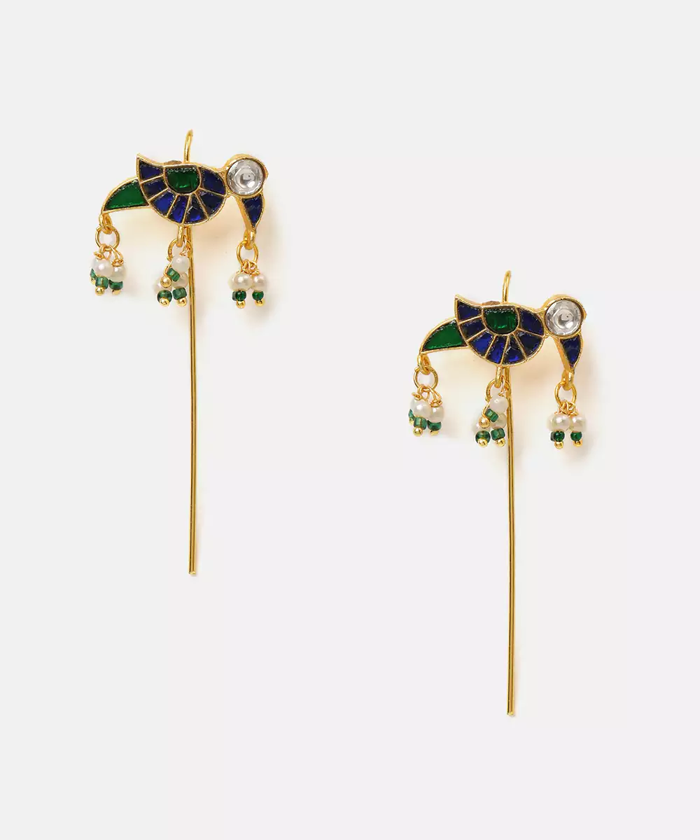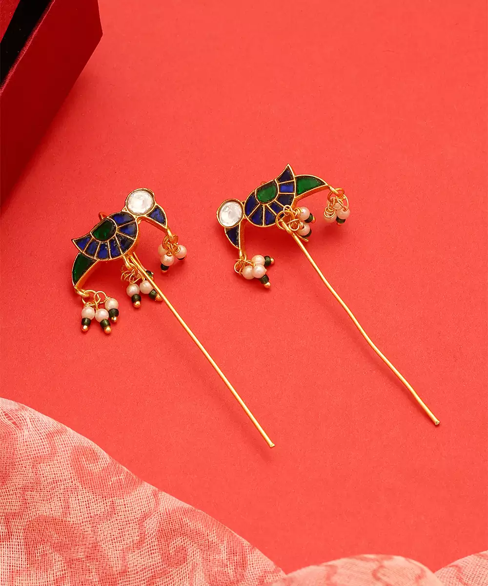 These Gold Plated Kundan Multicolor Stones Earrings Showcase Vibrant Design And Exquisite Craftsmanship. Embellished With Multicolor Stones And Kundan Work, They Add Festive Elegance To Any Look. Perfect For Weddings And Celebrations, These Earrings Pair Beautifully With Sarees, Lehengas, And Ethnic Outfits.