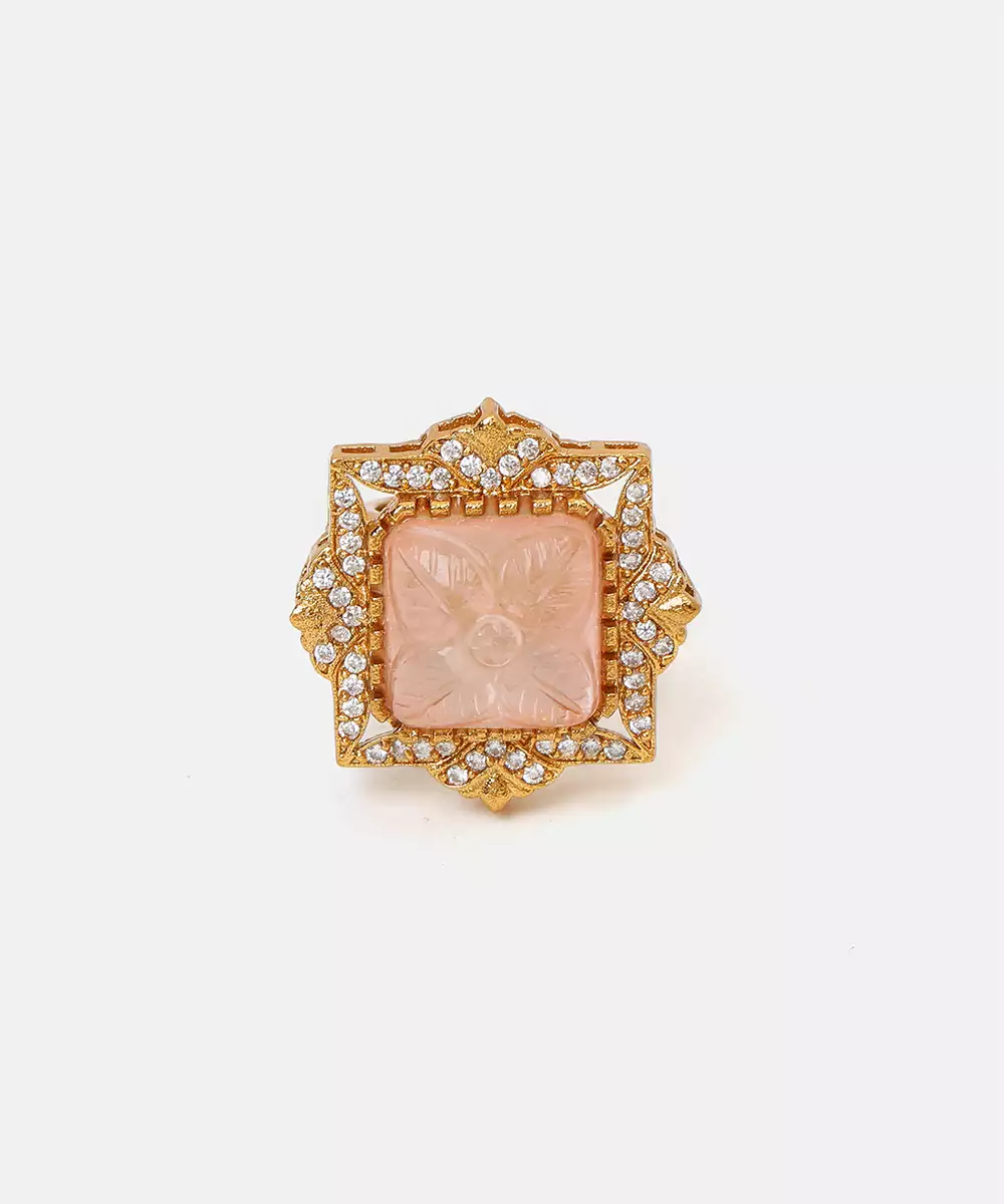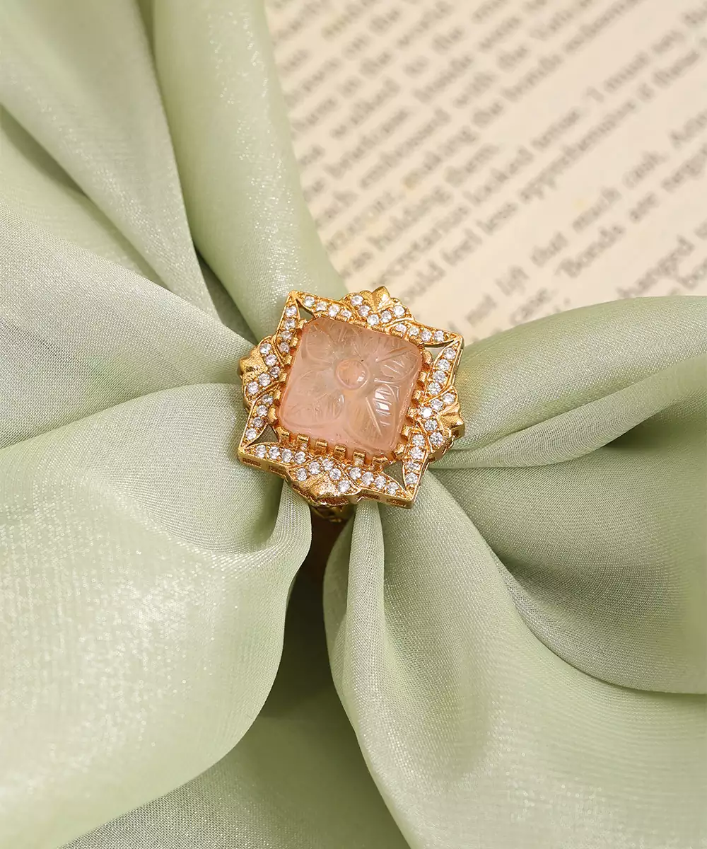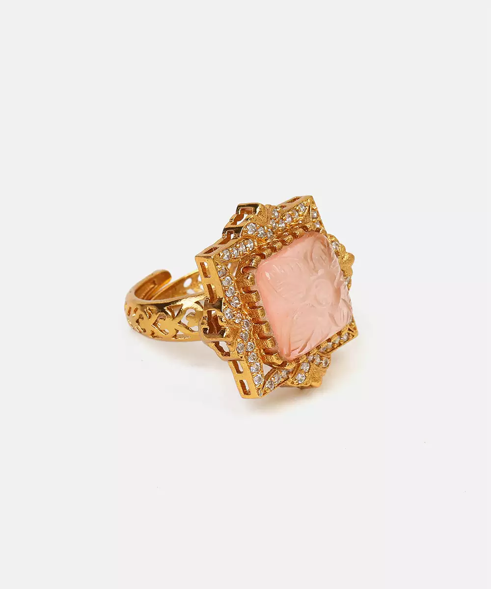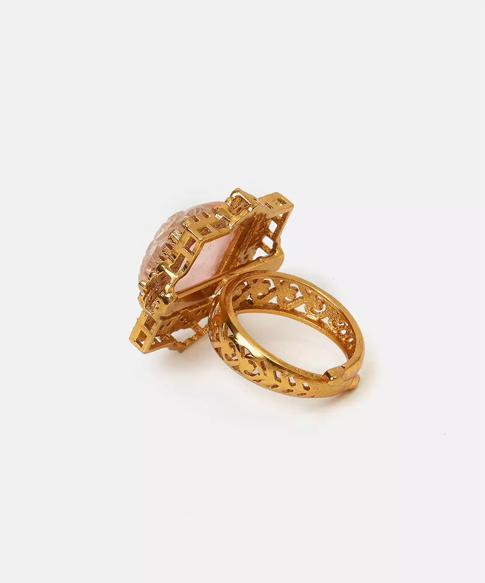 This Gold Plated Kundan Pink Stones Ring Exudes Timeless Charm And Feminine Elegance. Designed With Finely Set Pink Stones And Classic Kundan Detailing, It Reflects Traditional Craftsmanship With A Modern Touch. Perfect For Festive Occasions, Weddings, Or Parties, This Ring Adds A Graceful Pop Of Color To Any Ethnic Or Fusion Look.
