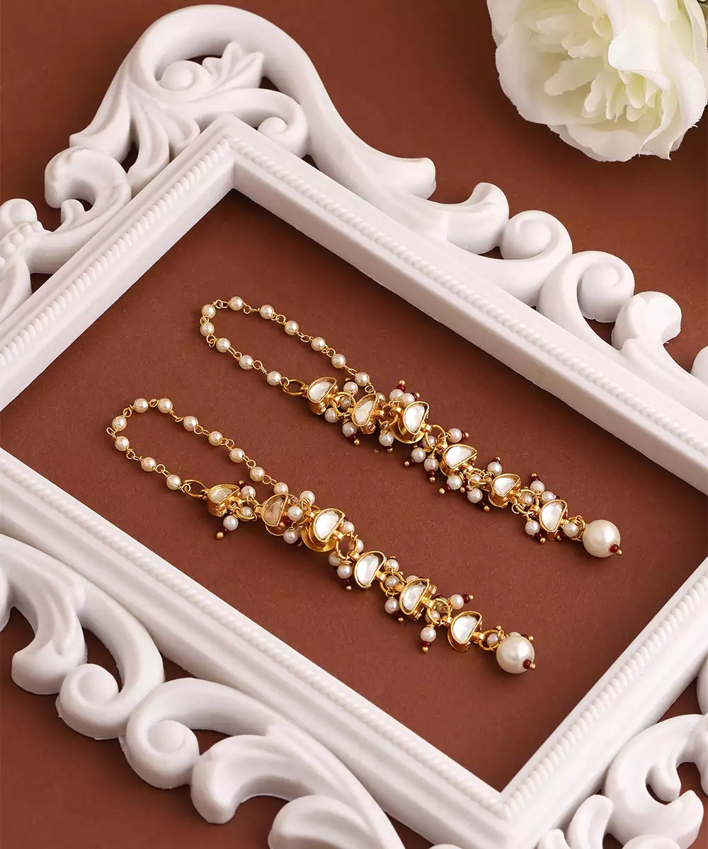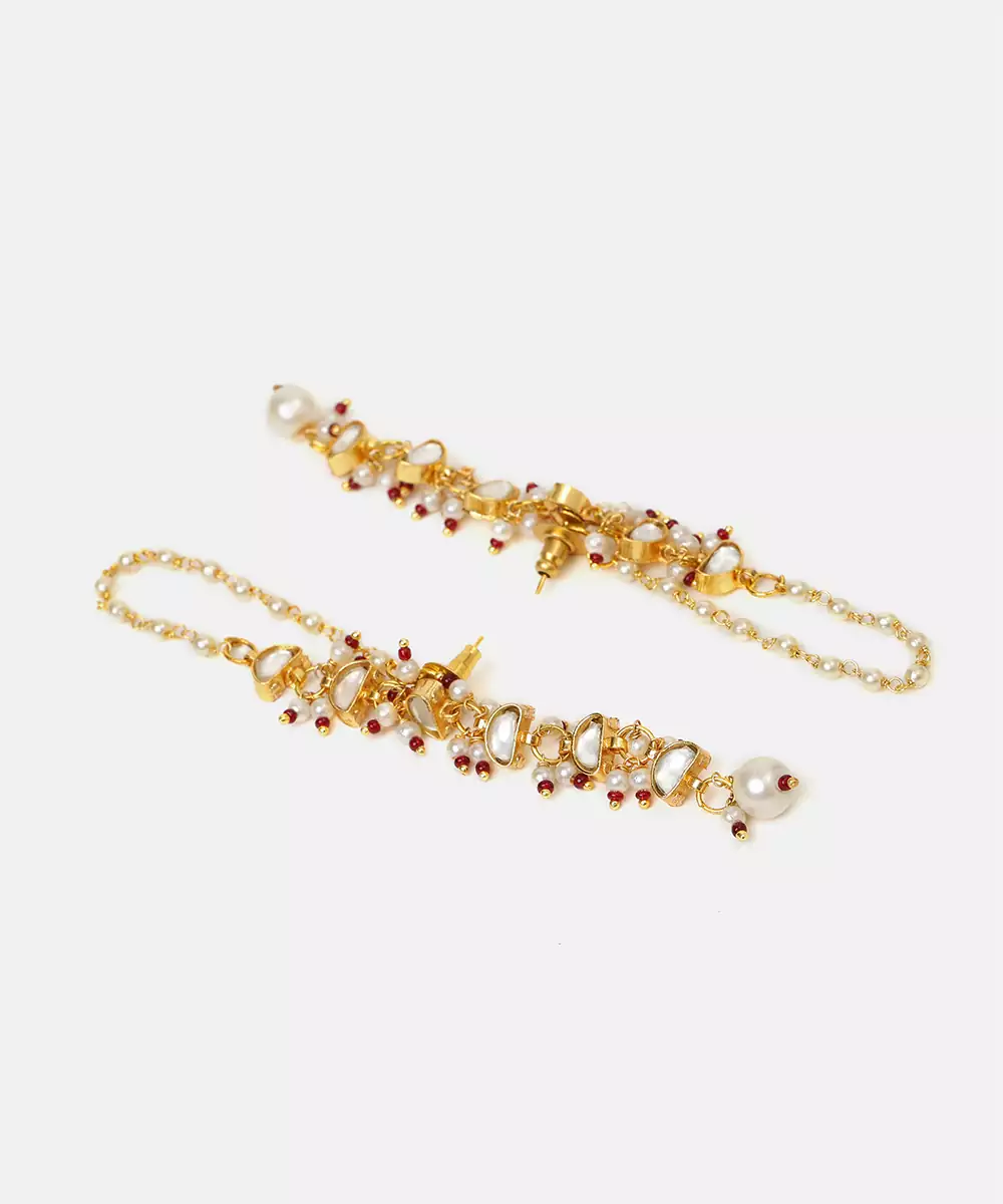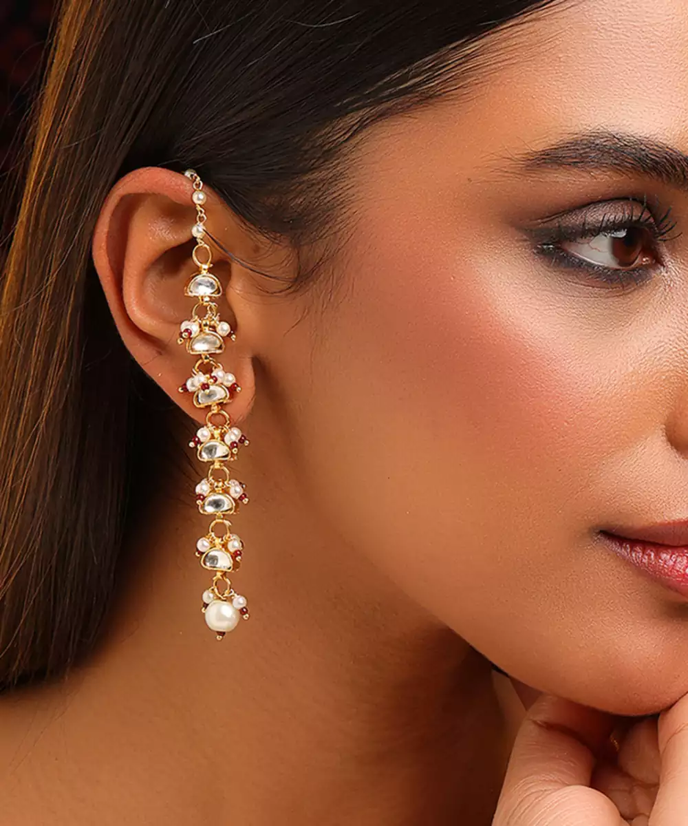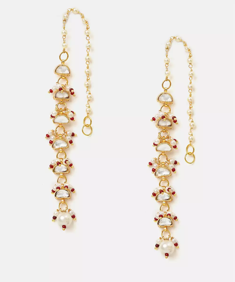 These Gold Plated Kundan Red Stones Earrings Showcase Bold Color And Intricate Artistry. Crafted With Vibrant Red Stones And Kundan Detailing, They Bring Richness To Any Ethnic Outfit. Perfect For Weddings And Celebrations, These Earrings Enhance Sarees And Lehengas With A Royal And Elegant Touch.