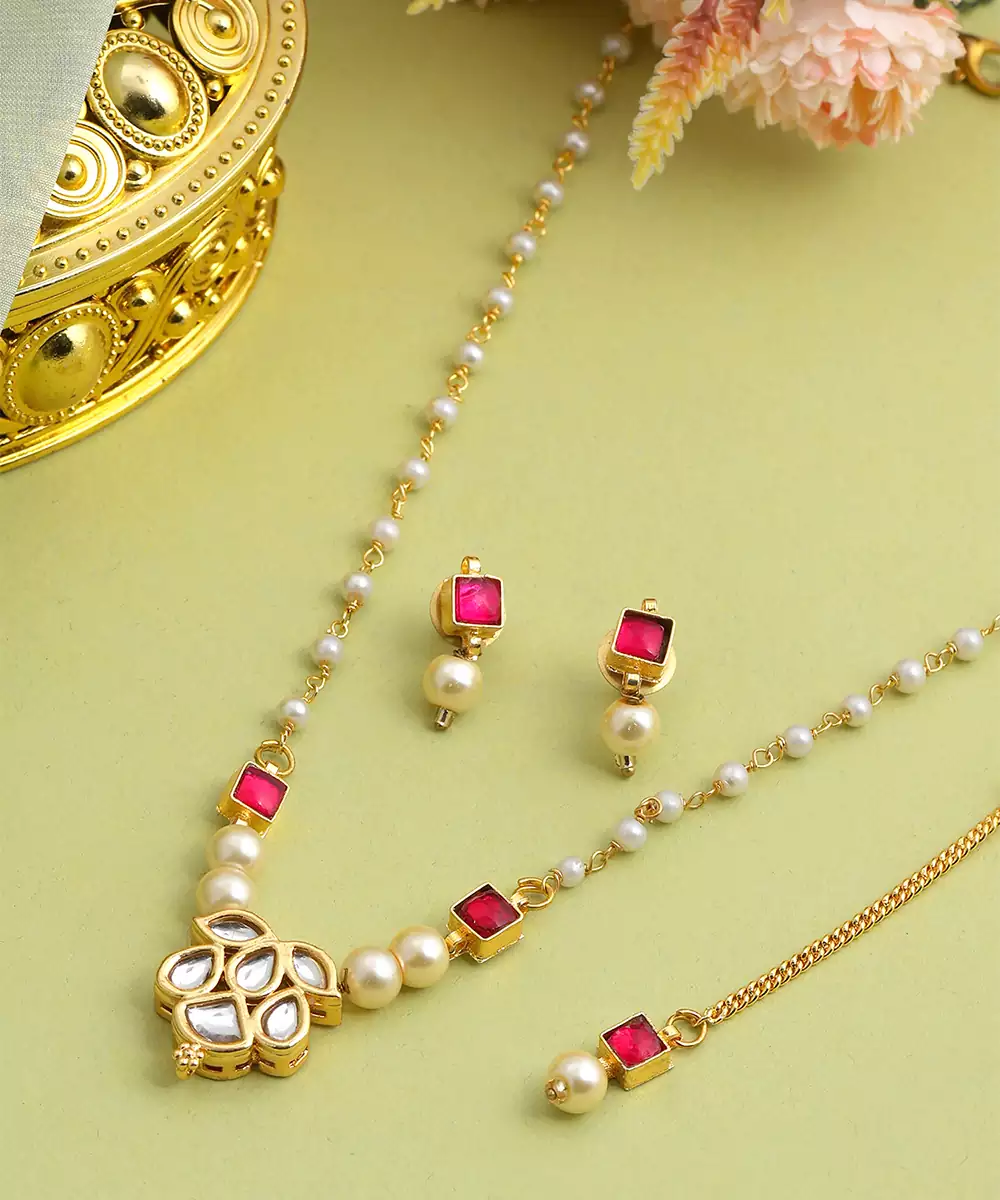 Components: 1 Necklace / 1 Pair Of Earring / 1 Maang Tikka
