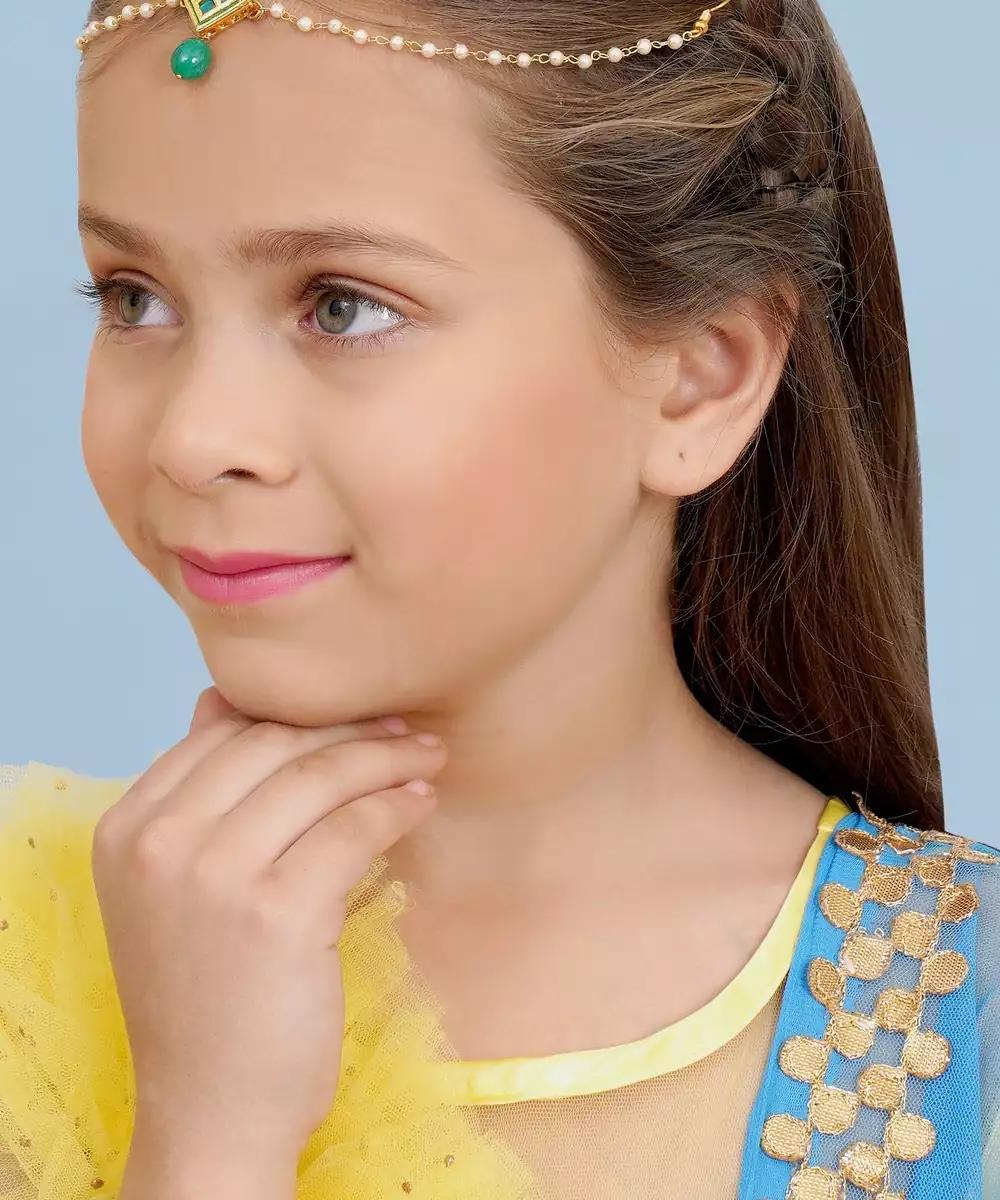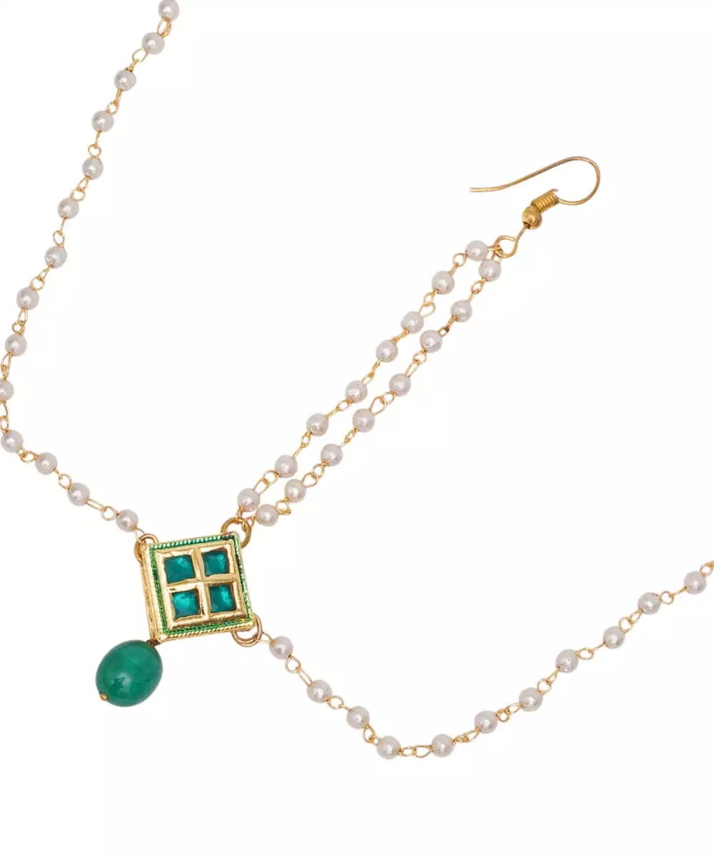 Gold Plated Kundan Studded & Beaded Layered Matha Patti