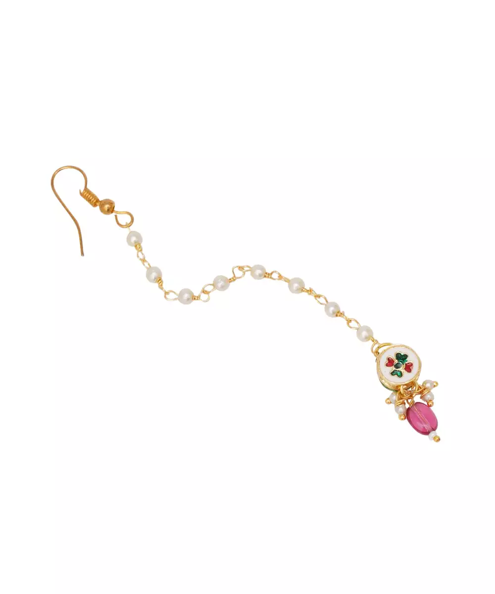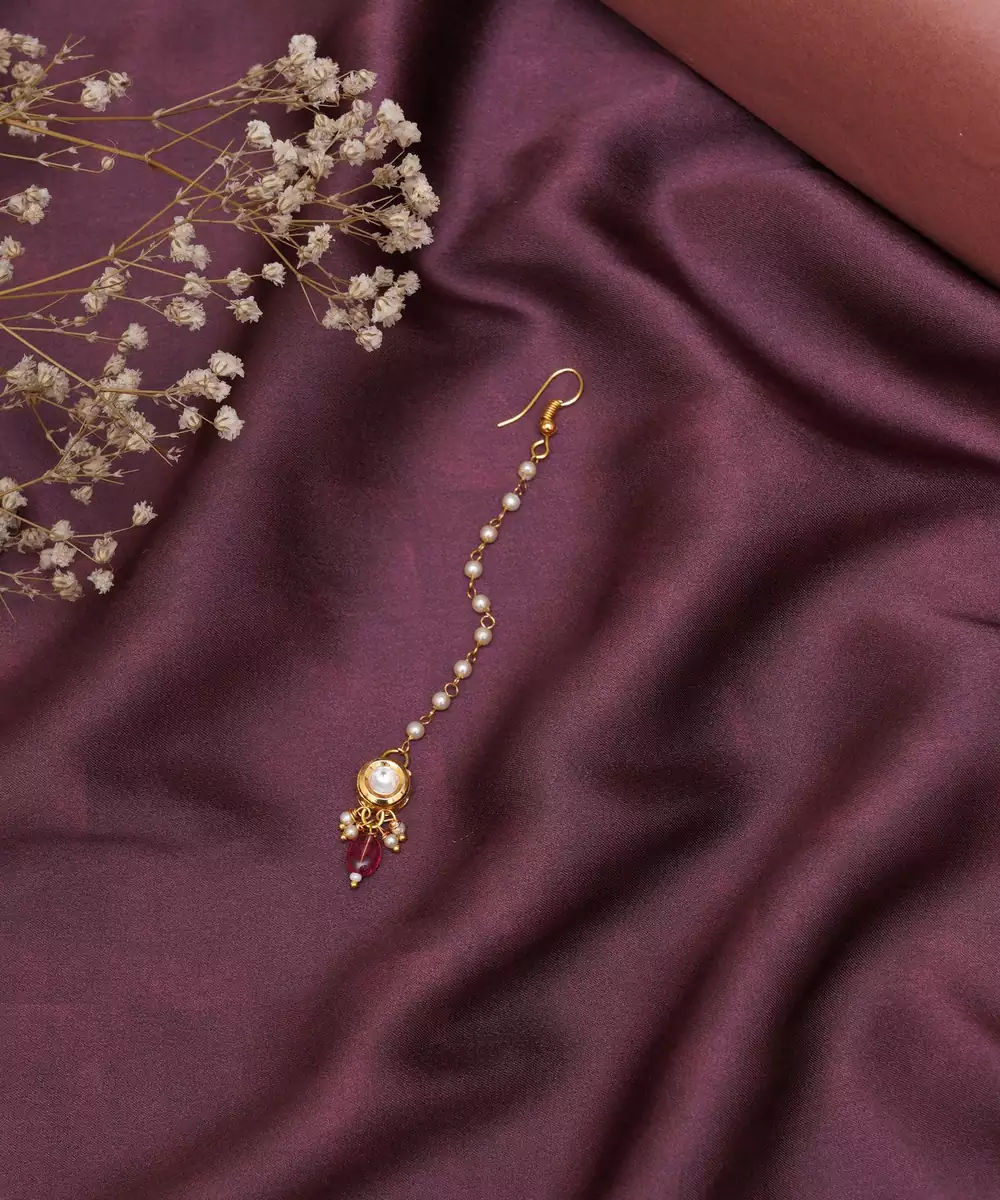 Gold Plated Kundan Studded & Beaded Maang Tikka