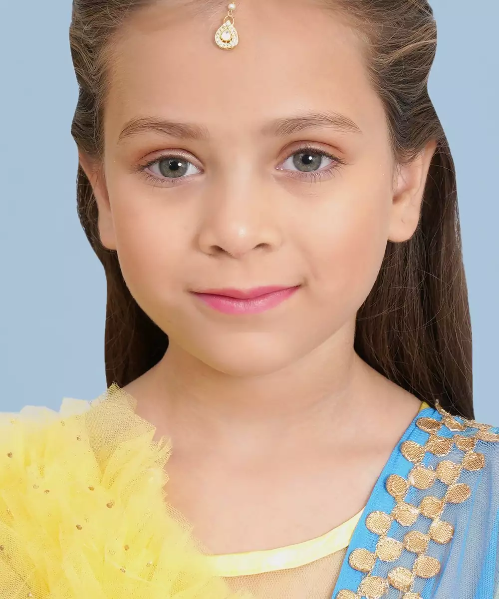 Aqua Blue Floral Embellished Lehenga Set With Leheriya Dupatta