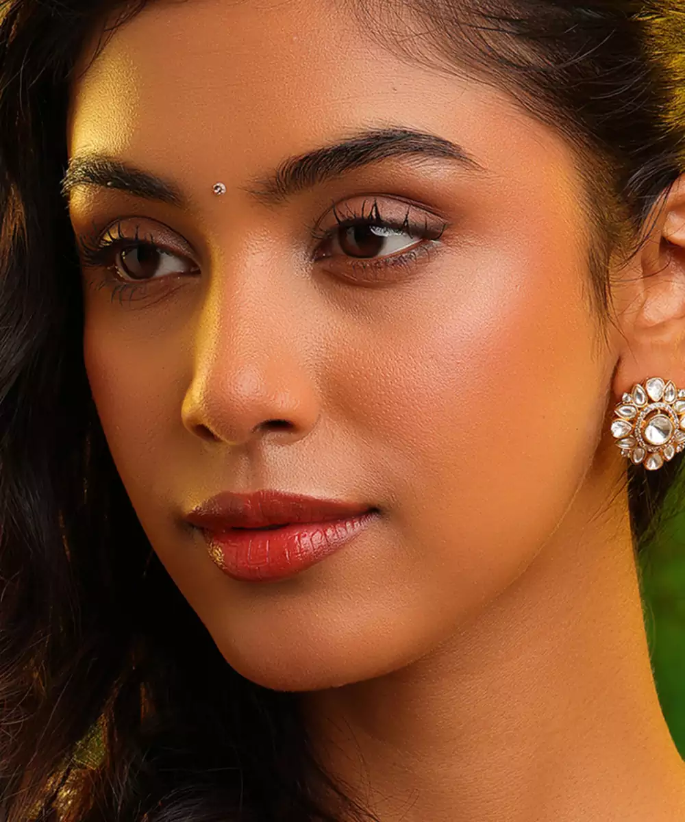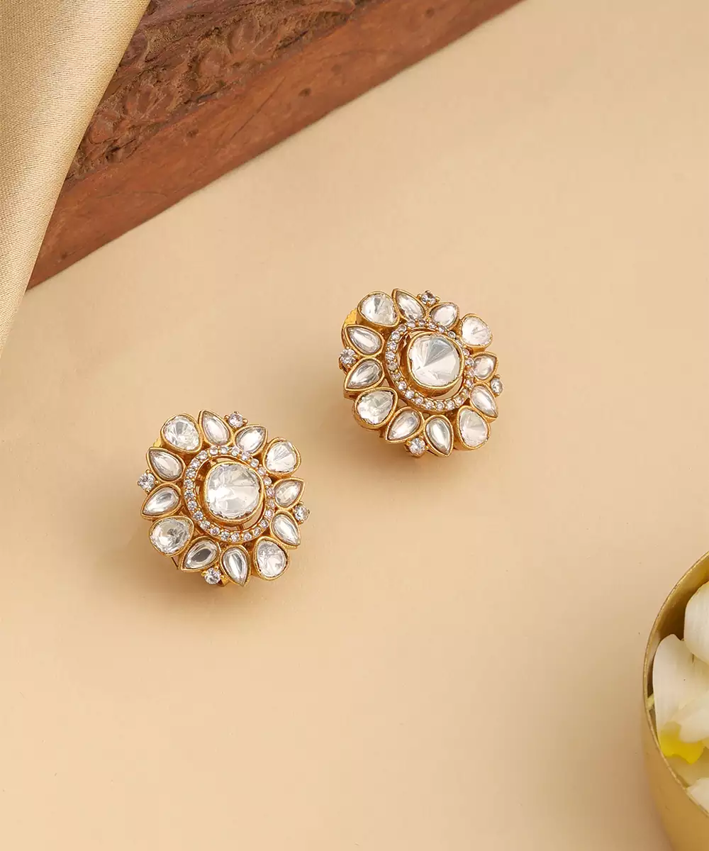 These Gold Plated Kundan Studs Reflect Classic Beauty And Minimal Elegance. Crafted With Traditional Kundan Detailing, They Offer A Subtle Yet Refined Look. Ideal For Festive Occasions, Weddings, Or Daily Ethnic Wear, These Studs Pair Effortlessly With Sarees, Lehengas, And Fusion Outfits.