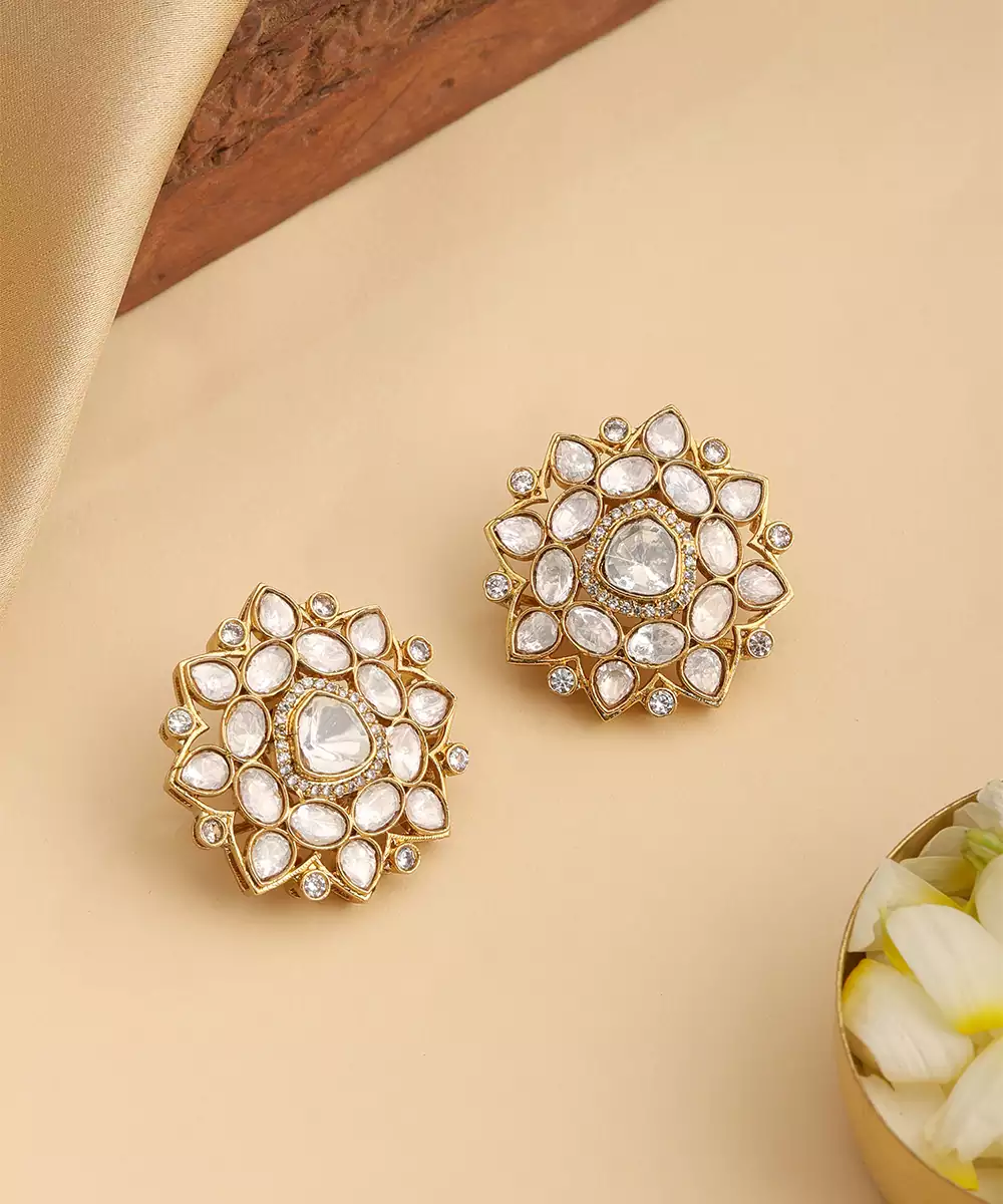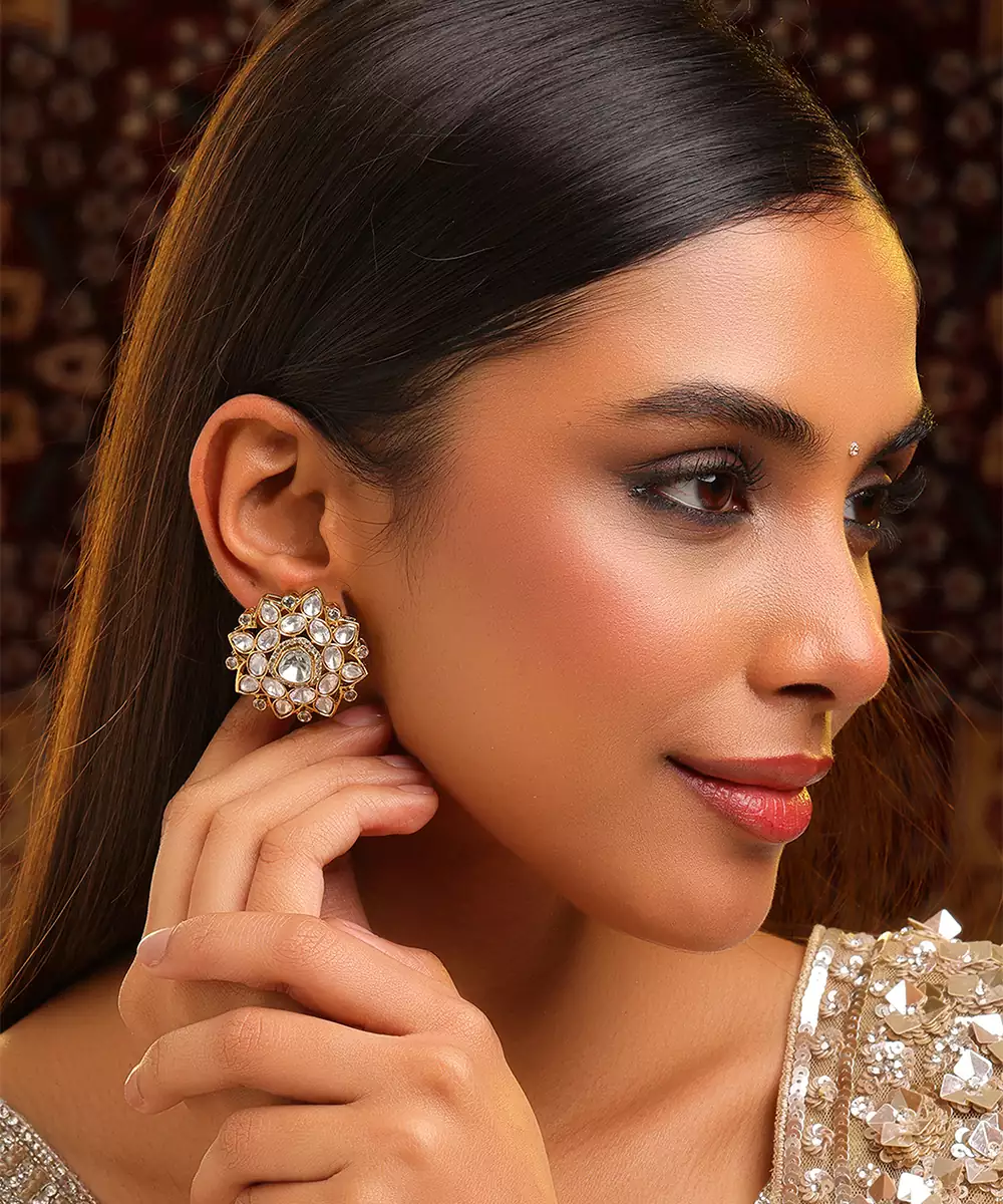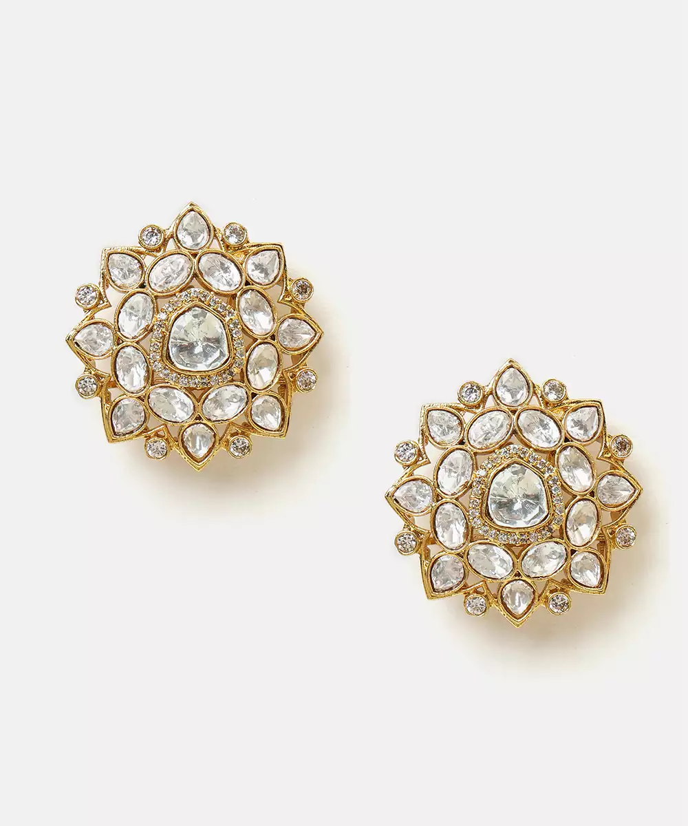 These Gold Plated Kundan Studs Combine Simplicity With Traditional Artistry. Featuring Fine Kundan Detailing, They Create A Graceful Accessory For Everyday Or Festive Wear. Ideal For Weddings And Celebrations, These Studs Enhance Ethnic Outfits With Understated Elegance And Classic Appeal.