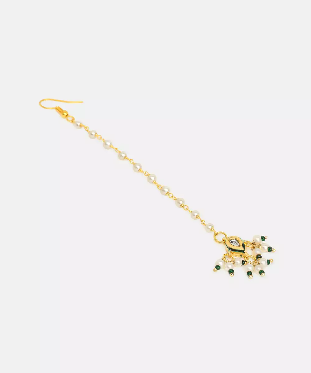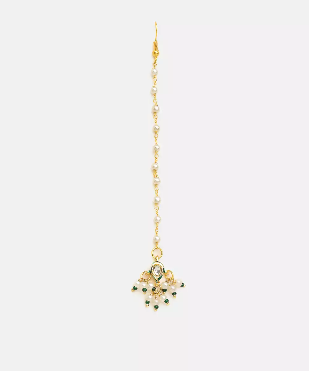 This Gold Plated Kundan Maang Tikka Is Embellished With Radiant Yellow Stones That Bring Warmth And Vibrancy To Traditional Looks. Crafted With Fine Detailing, It Highlights The Forehead With Graceful Elegance. Ideal For Haldi Ceremonies, Festive Occasions, And Weddings, It Complements Ethnic Ensembles Beautifully.