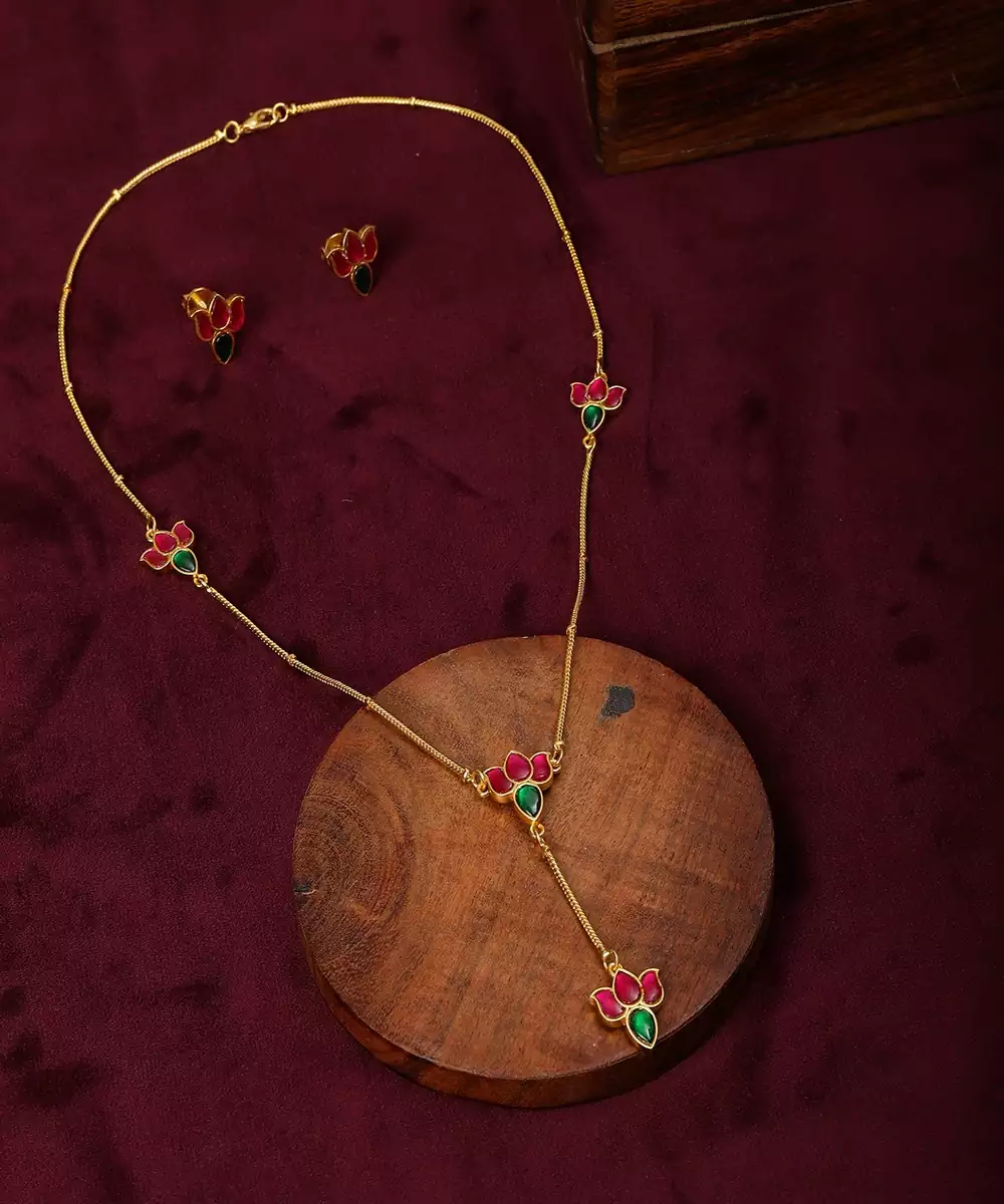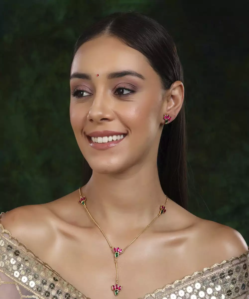 Components :1 Necklace, 1 Pair Earrings, Ruby Raang Box