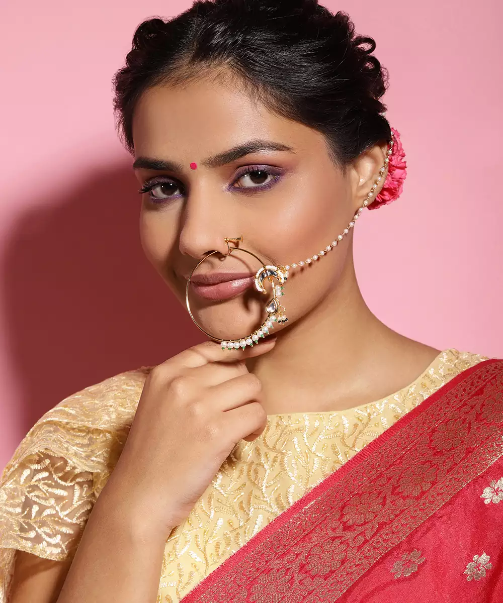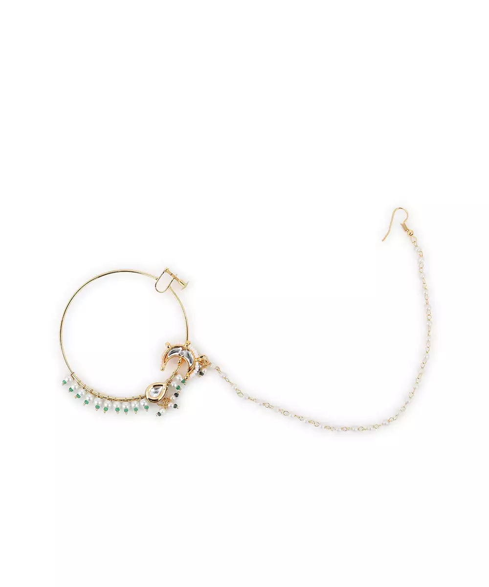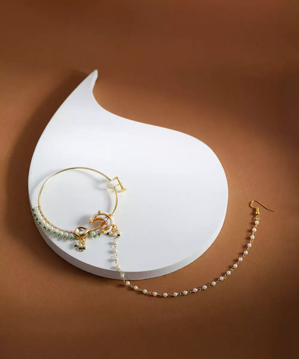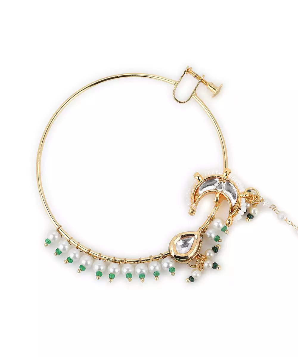 Featuring Multi Beaded Nose Ring. Ruby Raang Designs And Curates The Best In Class Kundan Pieces, As It’s A Timeless Classic And Can Elevate Any Look. We Make Sure We Add Lots Of Glam With Precious And Semi Precious Stones Along With Hypoallergenic Material For The Best In Class Quality. .