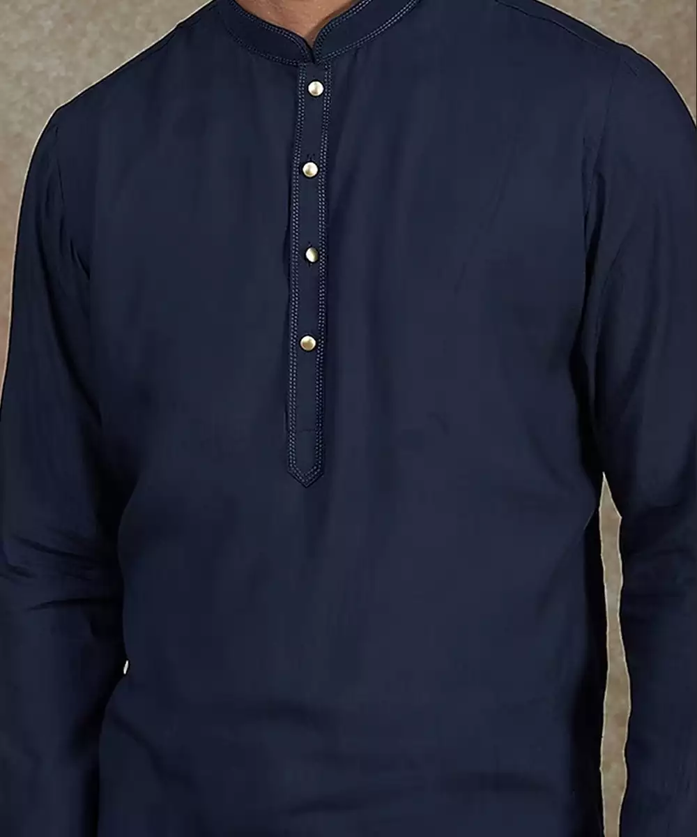 Blue Kurta With Machine Embroidery On Collar And Placket Paired With Pant .