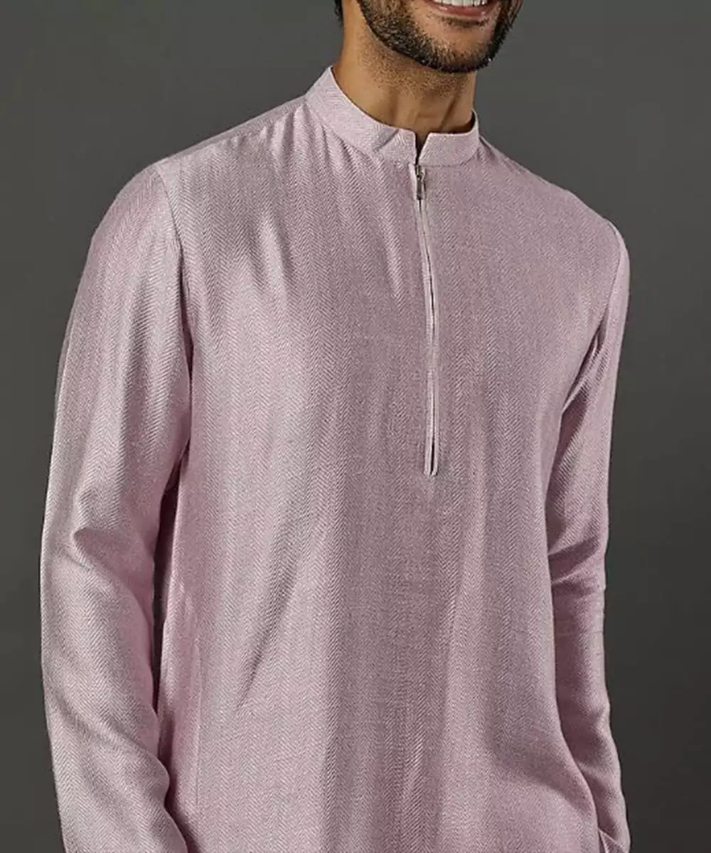 Silk Cotton Herringbone Weave Kurta With Slim Pant .