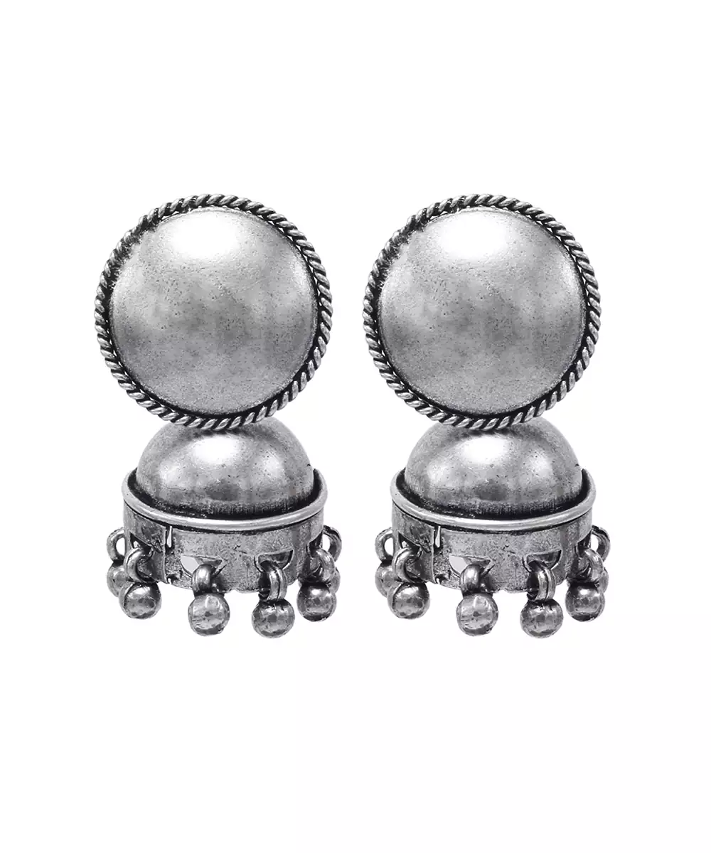 Silver Jhumka Ethnic Handcrafted Earrings Accented With Ghungroos. These Earrings Are The Ideal Combination Of Traditional Charm And Modern Elegance.