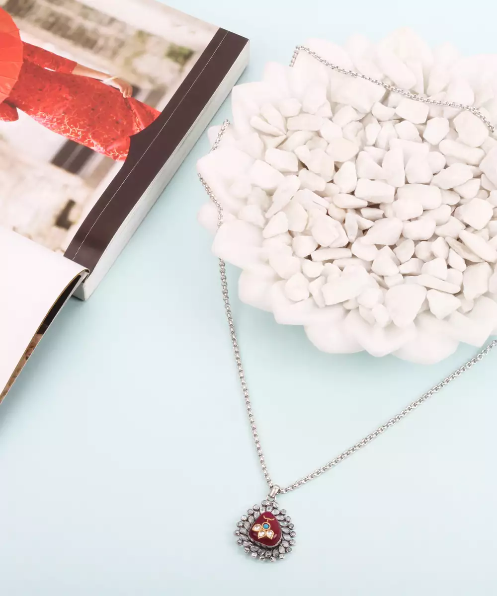 Pink Embroidered Mirror Work Georgette Yasir Kurta (Rani Pink)