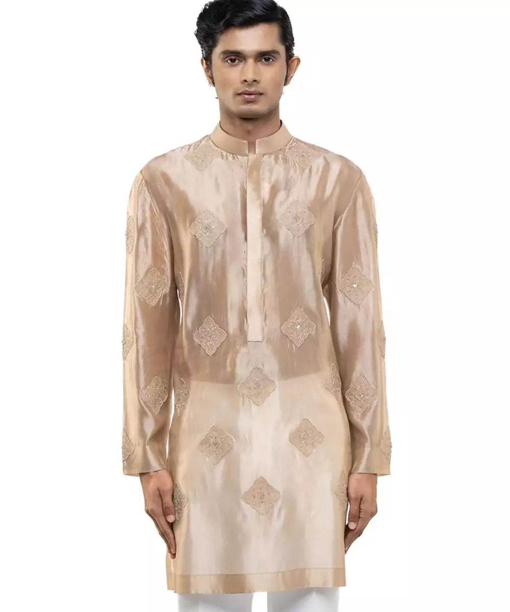 Pink Embroidered Mirror Work Georgette Yasir Kurta (Rani Pink)