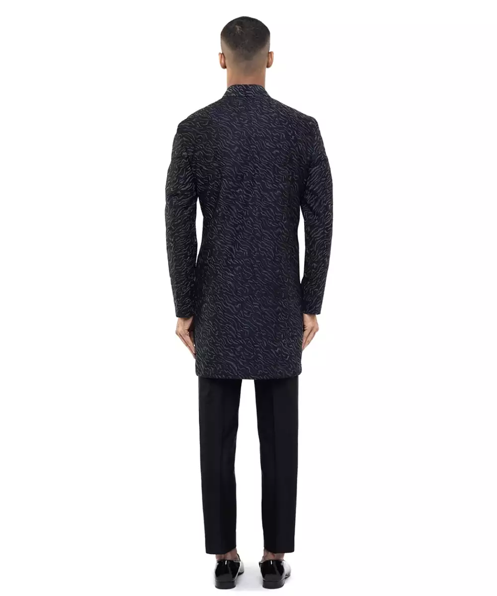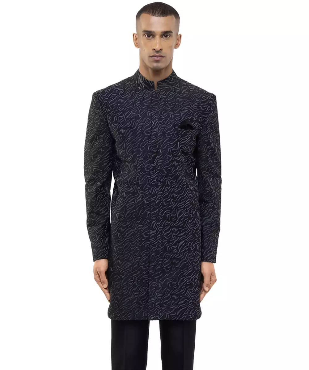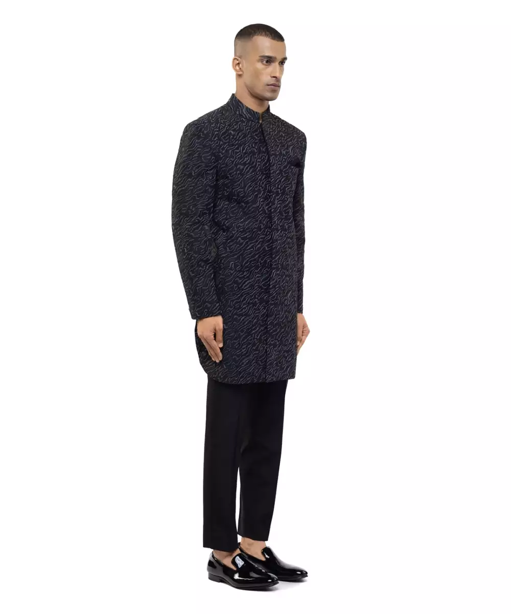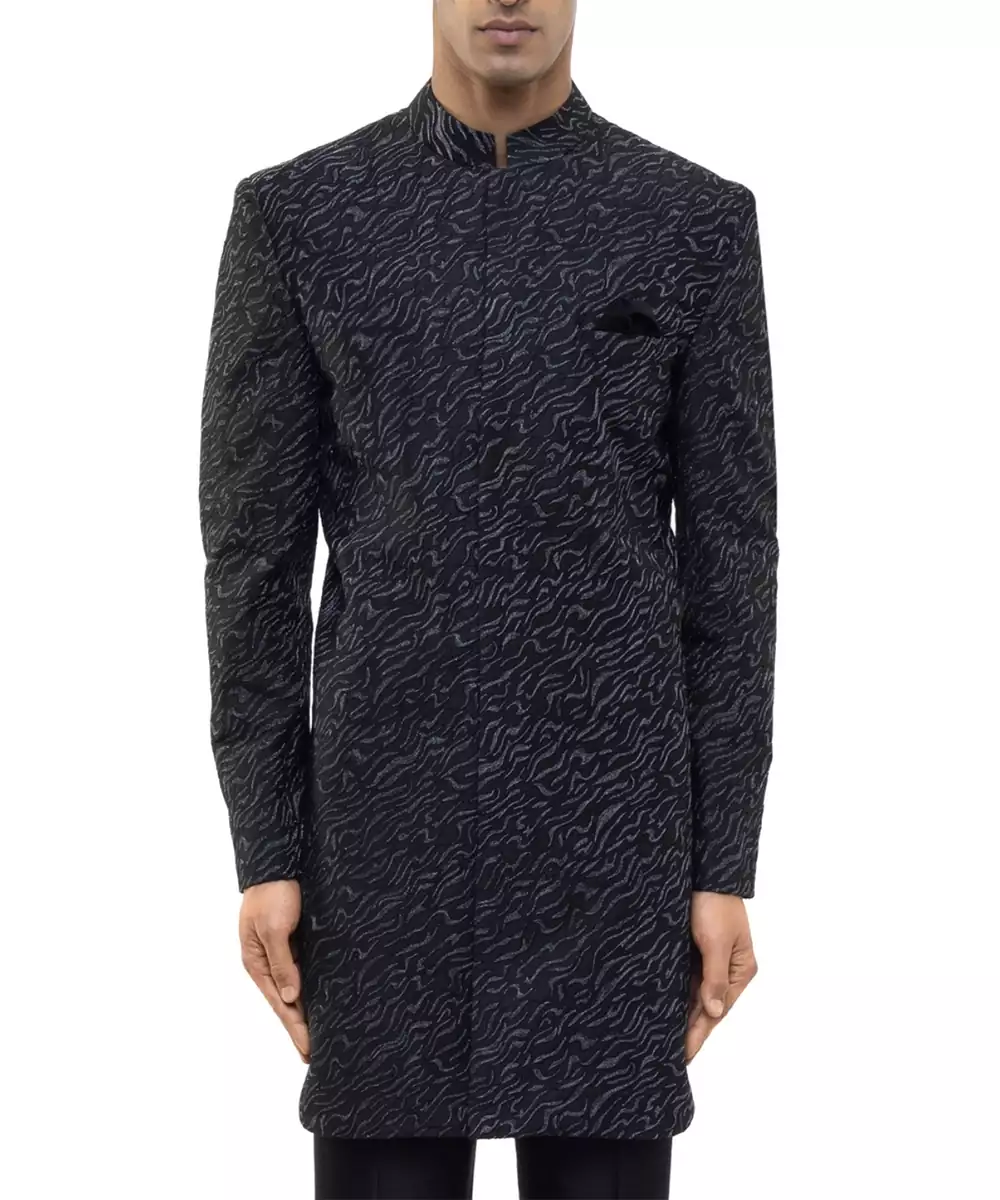 Black Embroidered Silk Sherwani Set