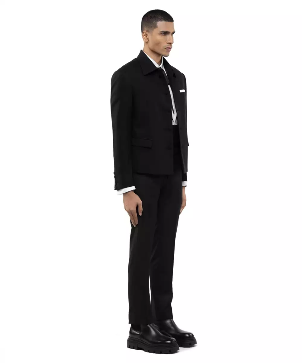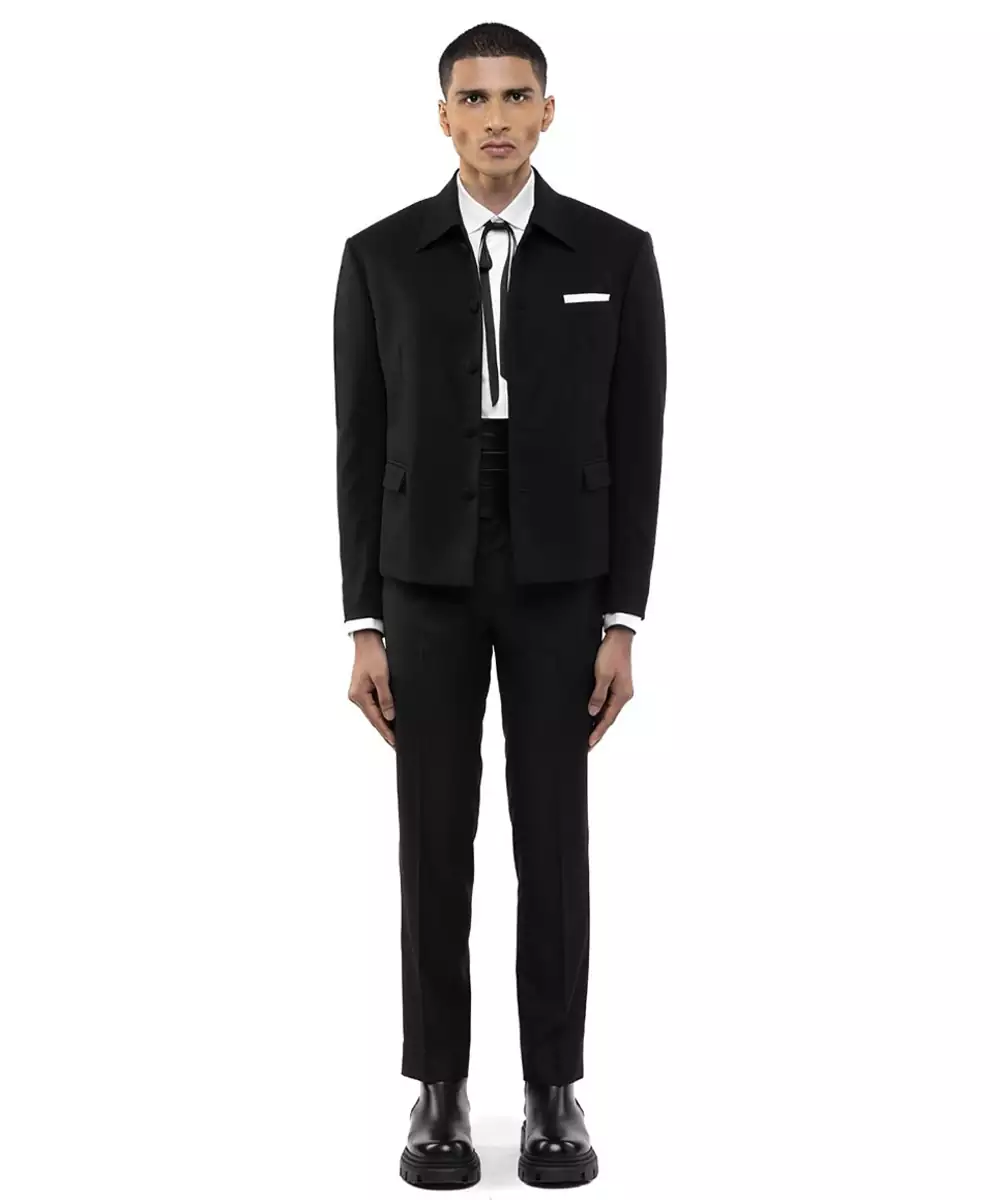 This Black Woolen Blend Blazer Offers A Perfect Balance Of Warmth And Refined Style. Crafted From A Soft, Durable Woolen Blend, It Provides A Structured Silhouette With A Polished Finish. Ideal For Formal Occasions Or Winter Layering, It Ensures Comfort, Elegance, And Timeless Appeal.