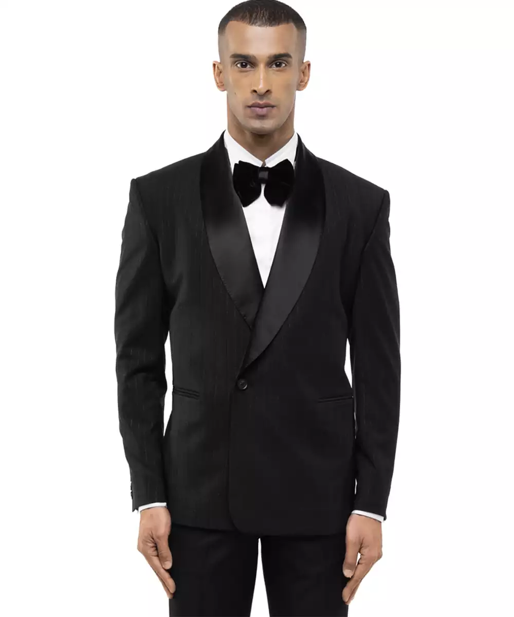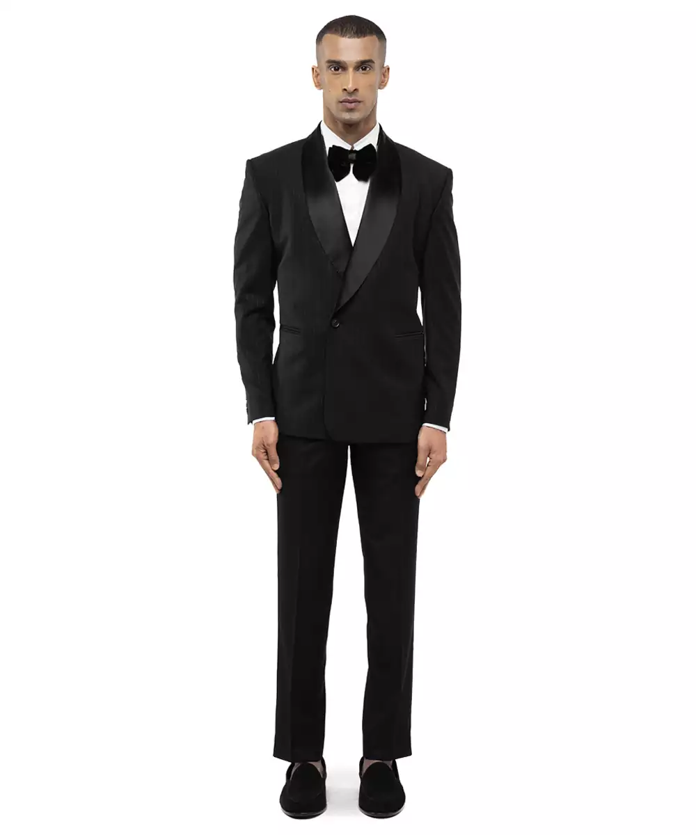 This Black Woolen Blend Tuxedo Set Combines Classic Elegance With Winter Ready Comfort. Crafted From A Soft, Durable Woolen Blend, It Offers A Structured, Tailored Fit With A Refined Finish. Perfect For Formal Events And Special Occasions, It Provides Warmth, Sophistication, And Timeless Formal Appeal.