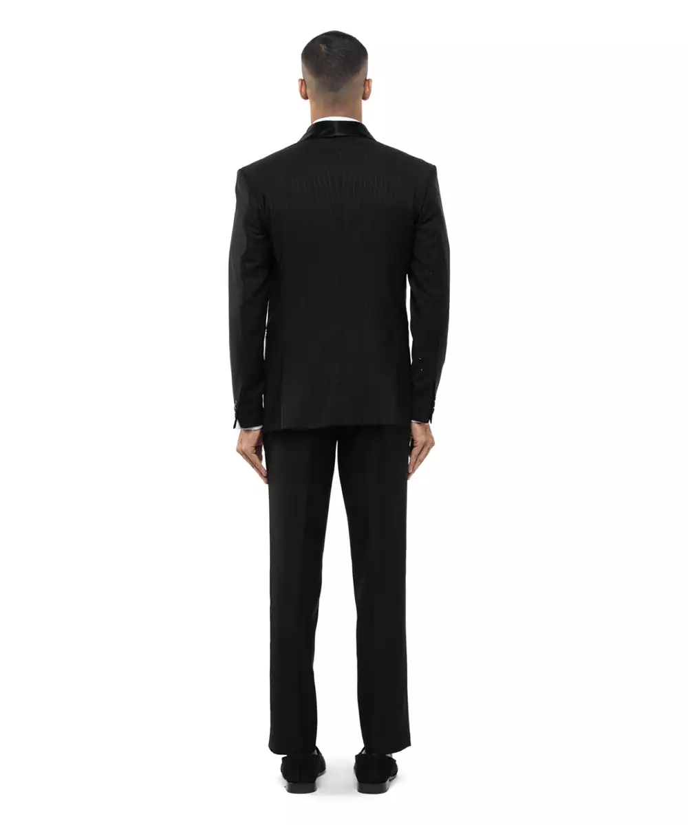 Black Woolen Blends Tuxedo Set