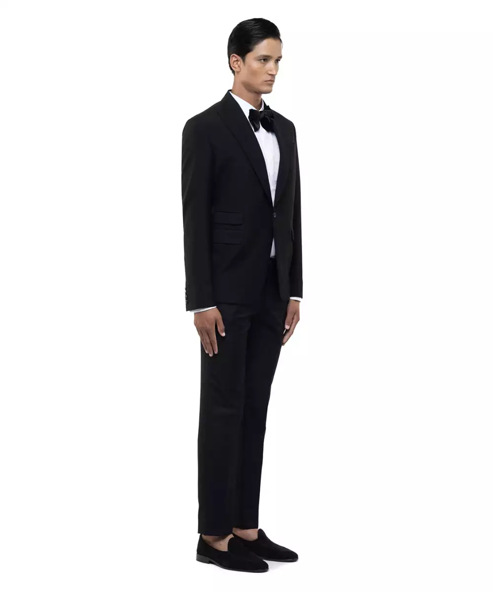 This Black Woolen Blend Tuxedo Set Combines Classic Elegance With Winter Ready Comfort. Crafted From A Soft, Durable Woolen Blend, It Offers A Structured, Tailored Fit With A Refined Finish. Perfect For Formal Events And Special Occasions, It Provides Warmth, Sophistication, And Timeless Formal Appeal.