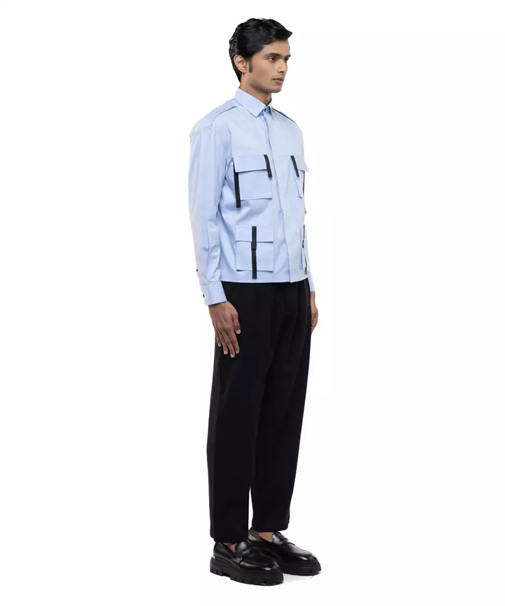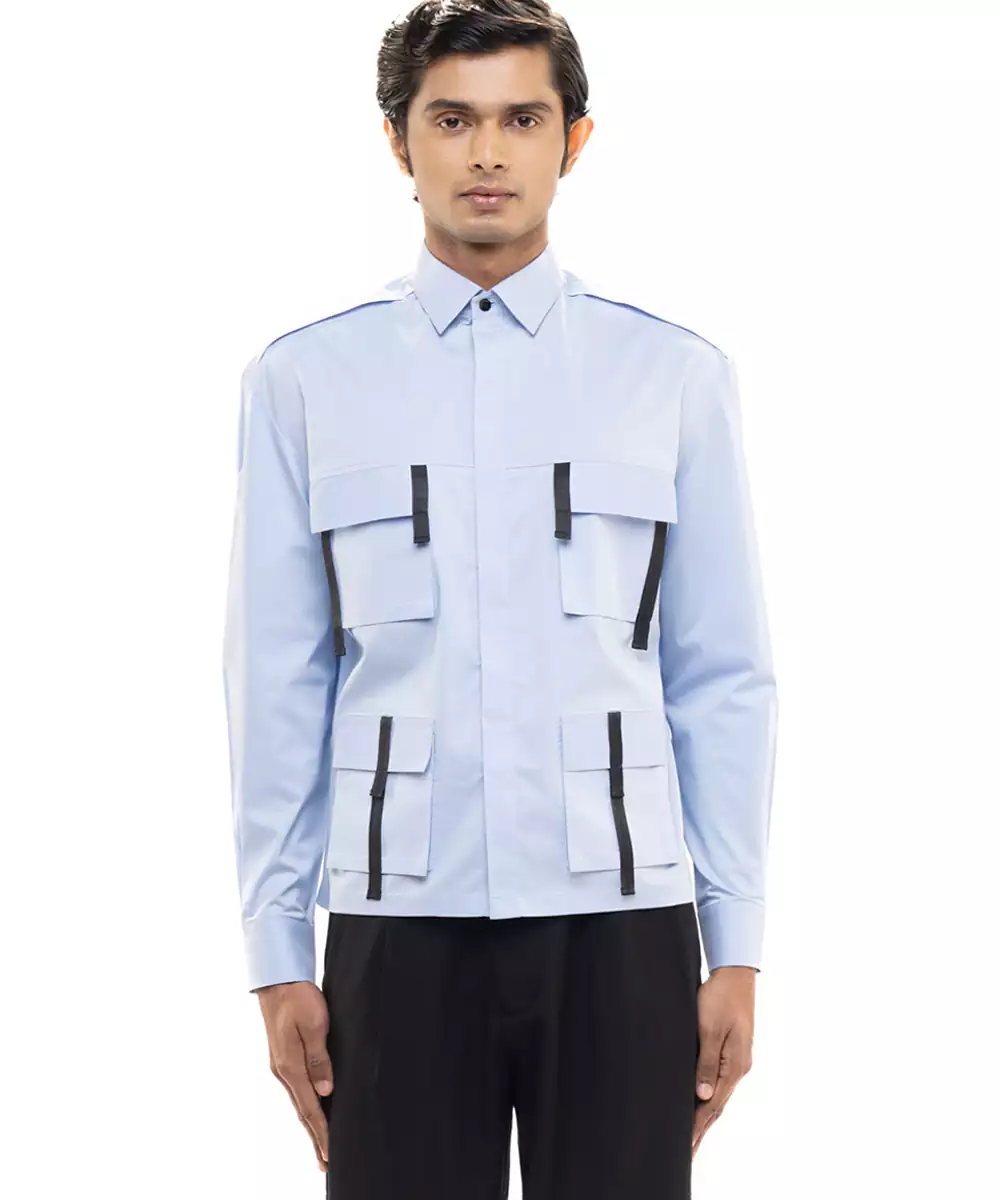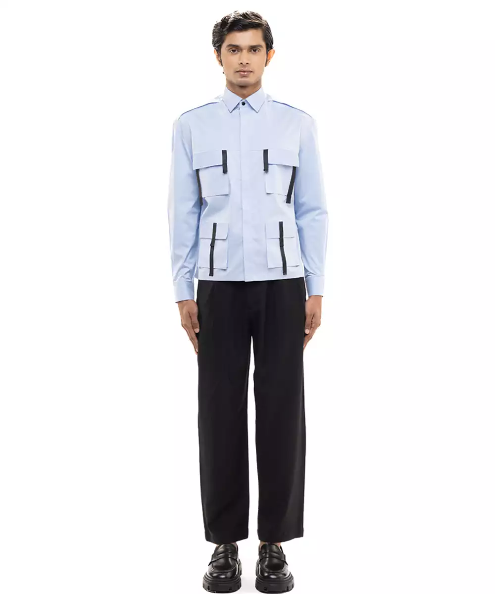 Blue Plain Cotton Shirt